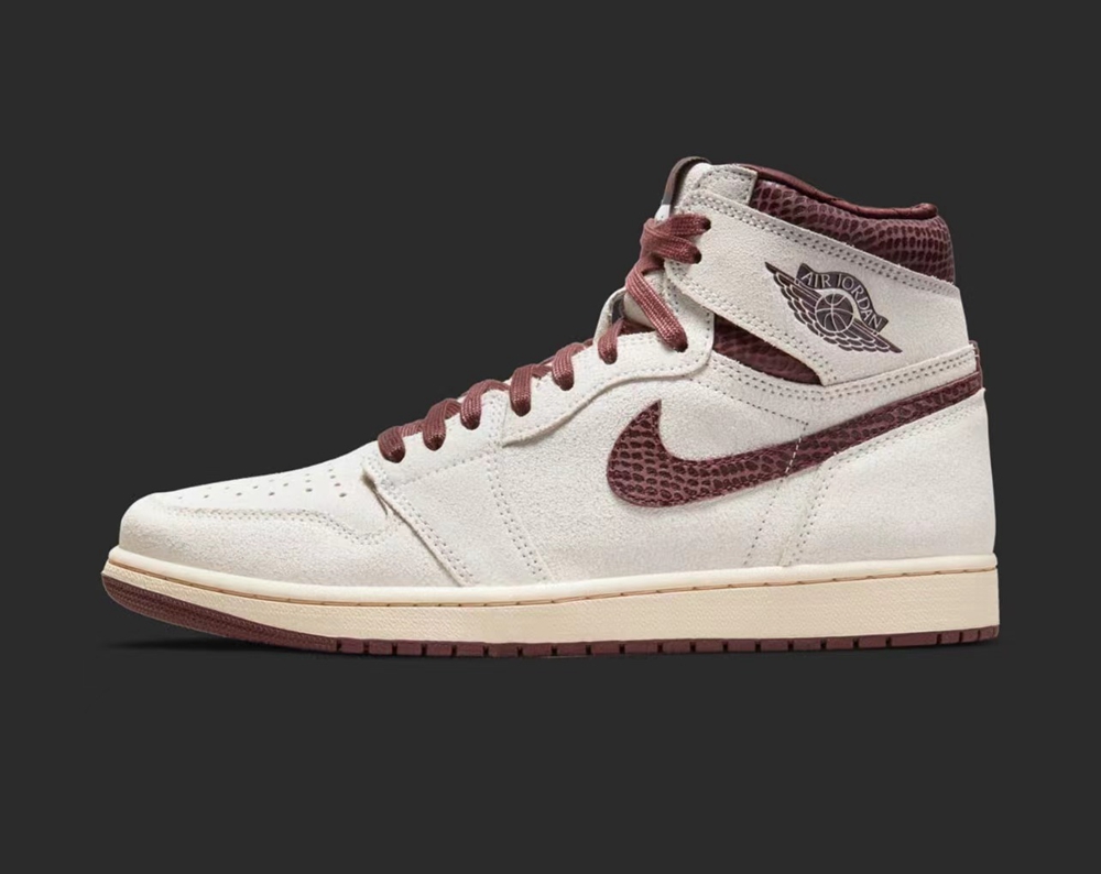 鞋身采用白色和波尔多红作为配色选择,鞋面麂皮搭配蛇纹材质 Swoosh 打造,内衬采用菱格纹理示人,呈现了奢华的质感。