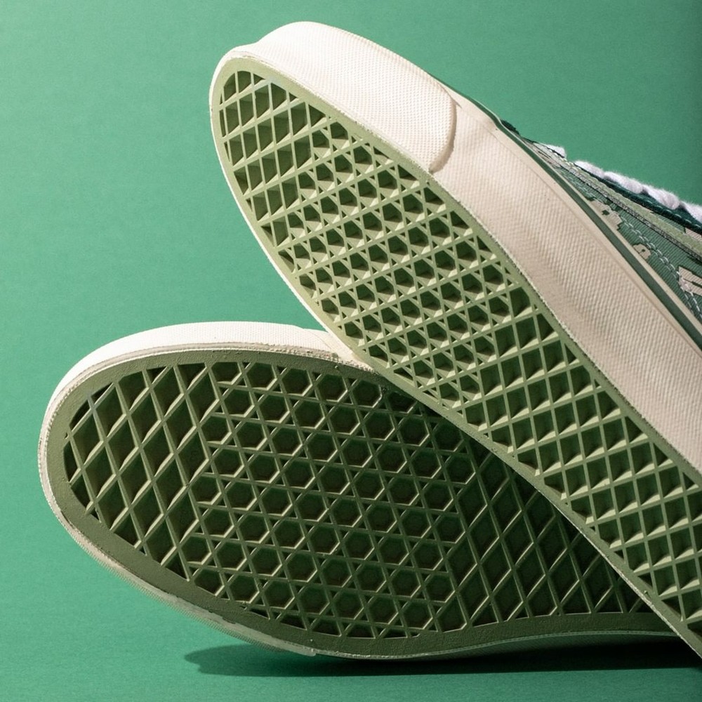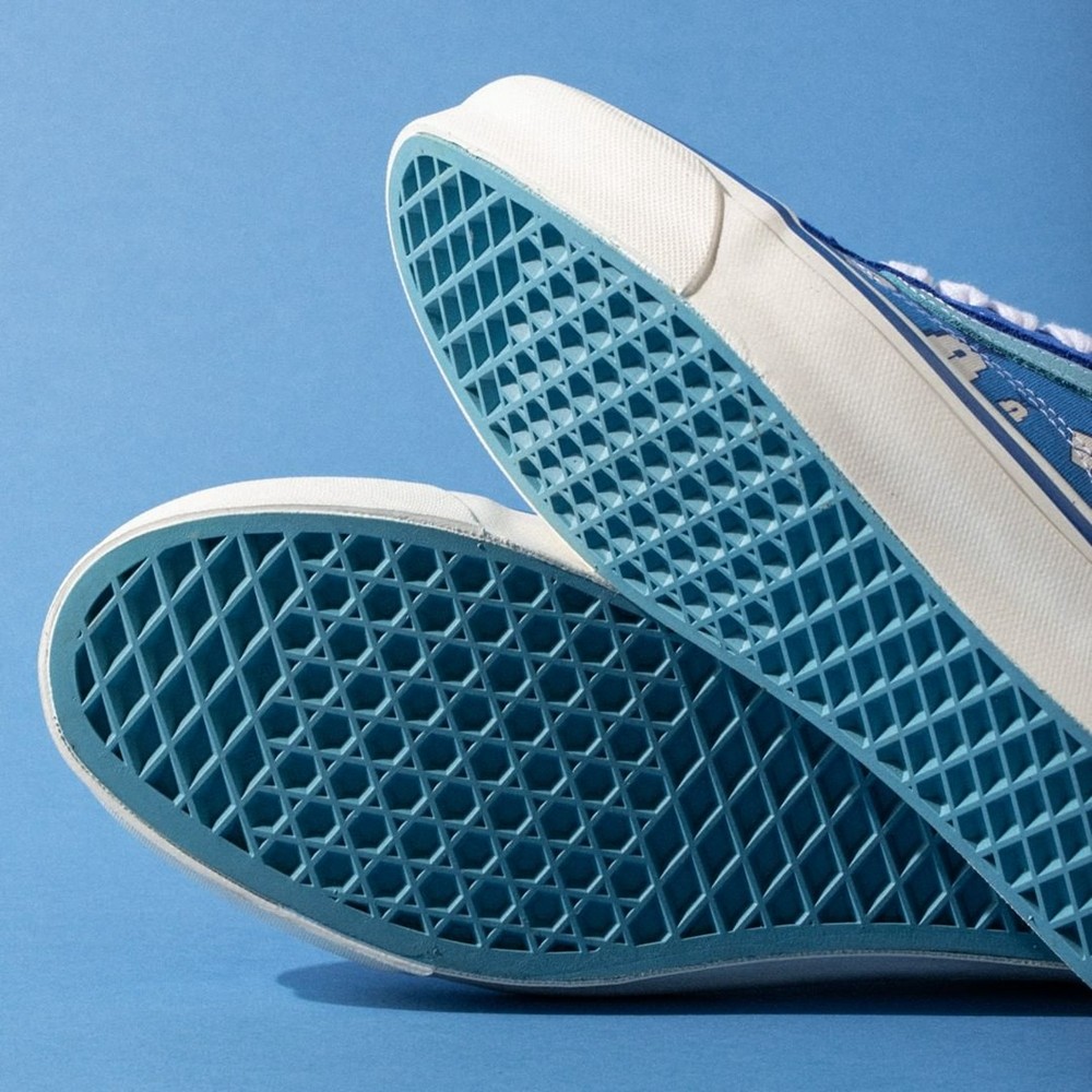 除了鞋舌 UNDEFEATED 五道杠和 Vans 的融合 Logo 外,鞋侧还点缀有 “U-Man” 形象的图案,彰显联名身份。
