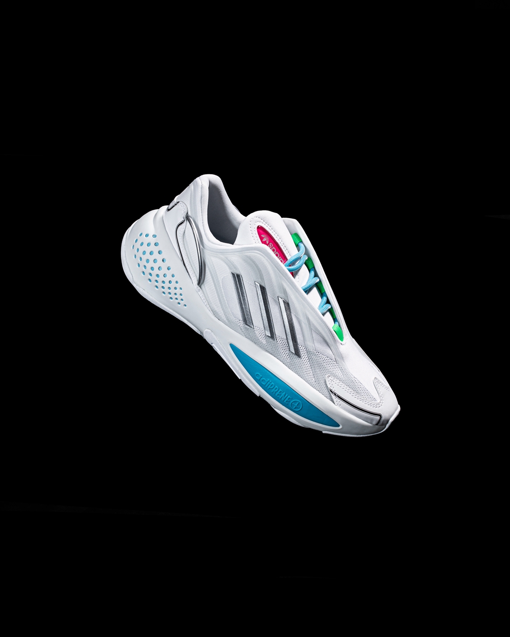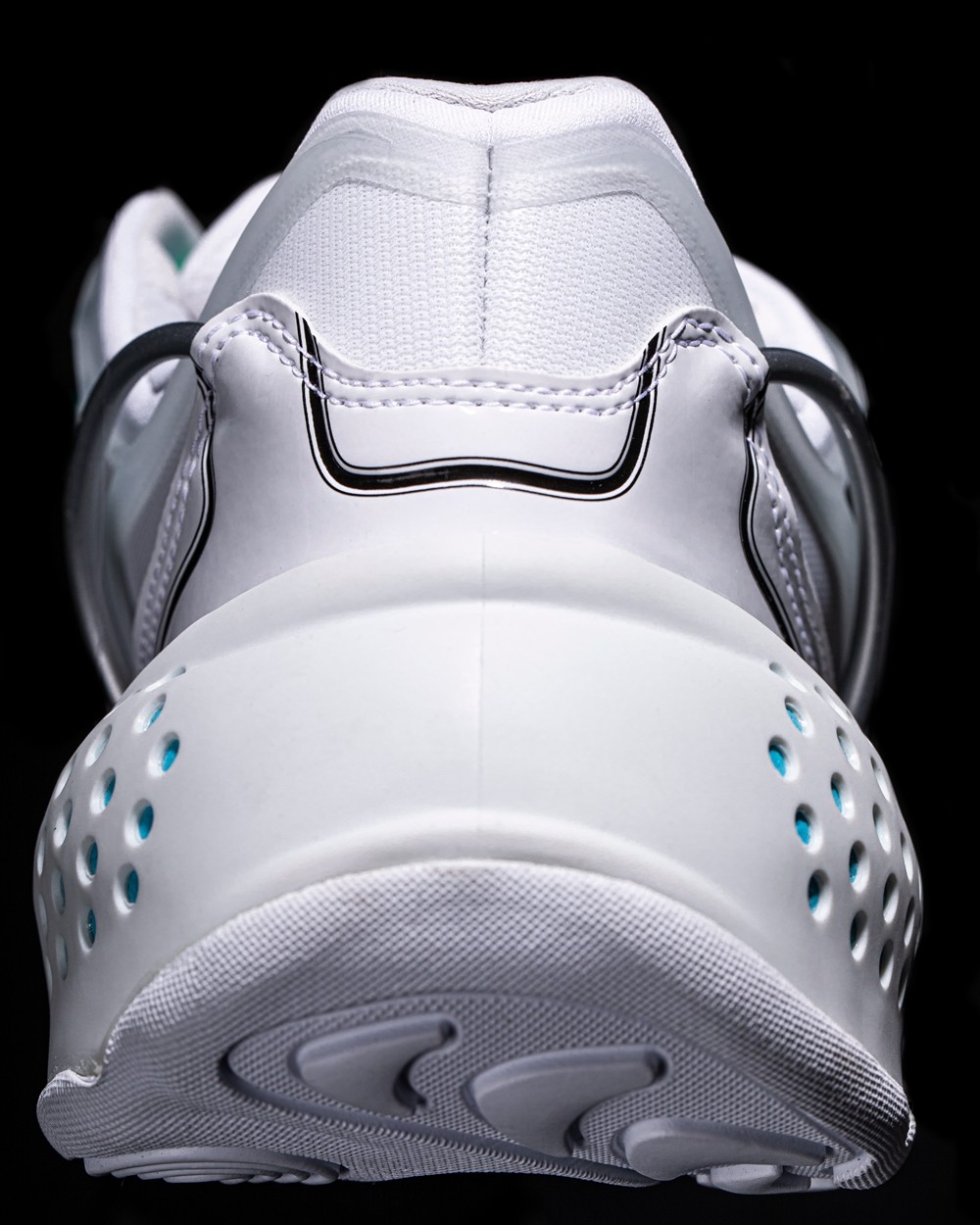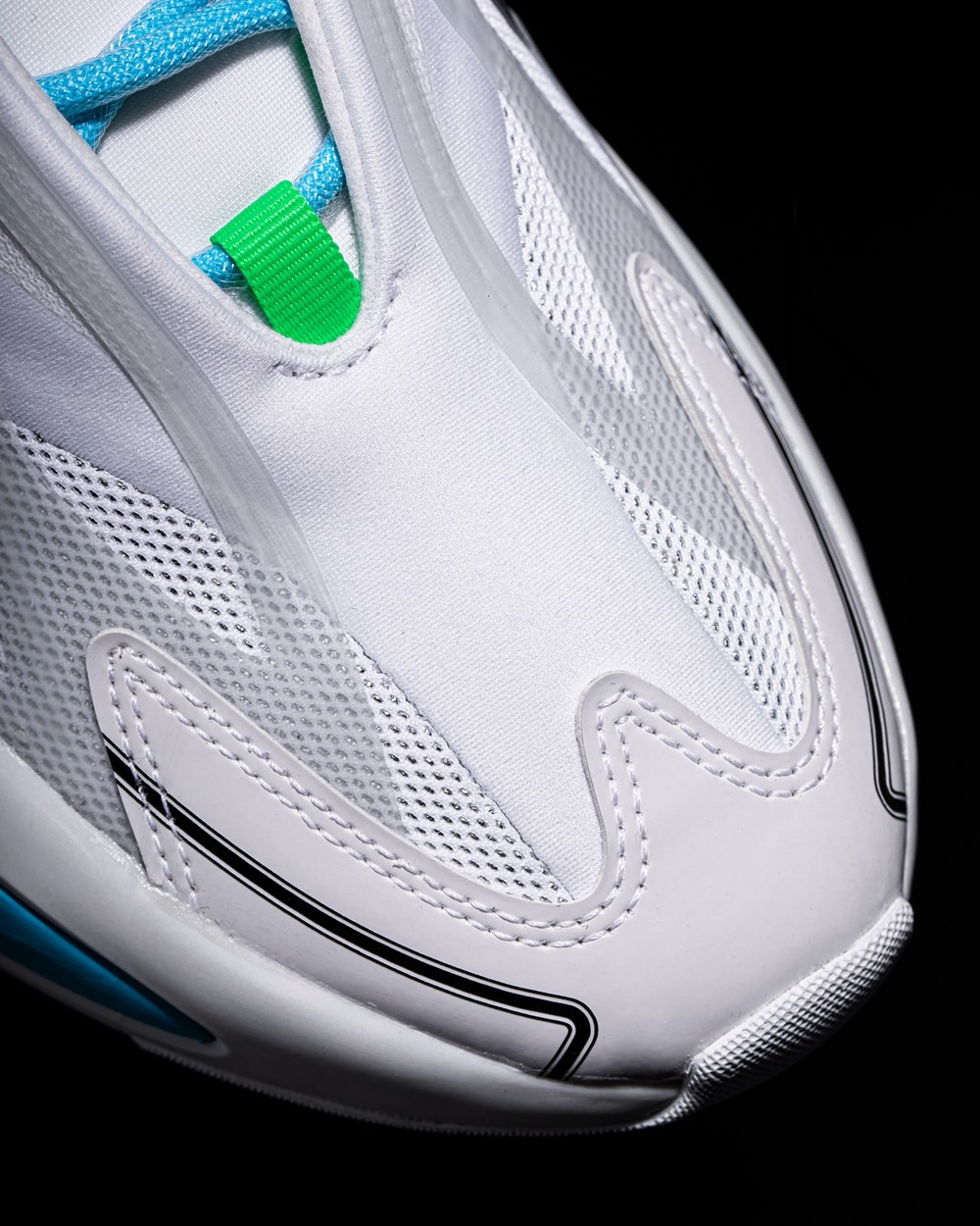 整双鞋以大面积白色示人,辅以几种亮色点缀细节,营造出极具科技感的视觉效果。