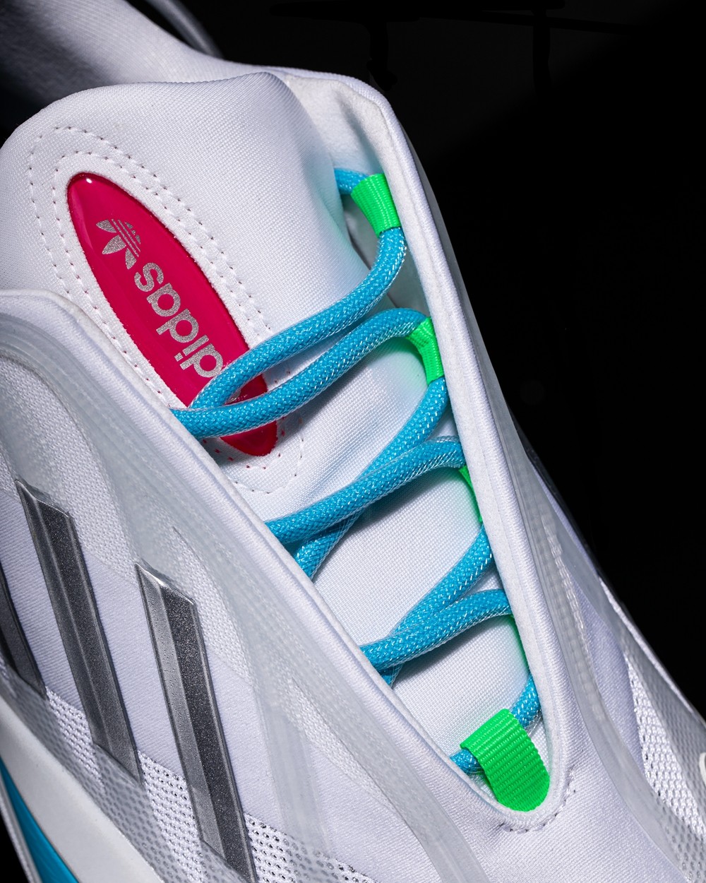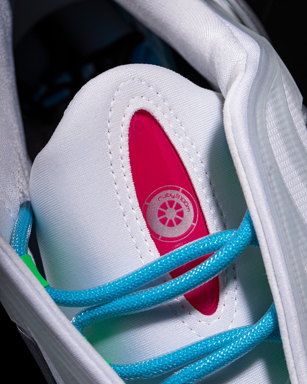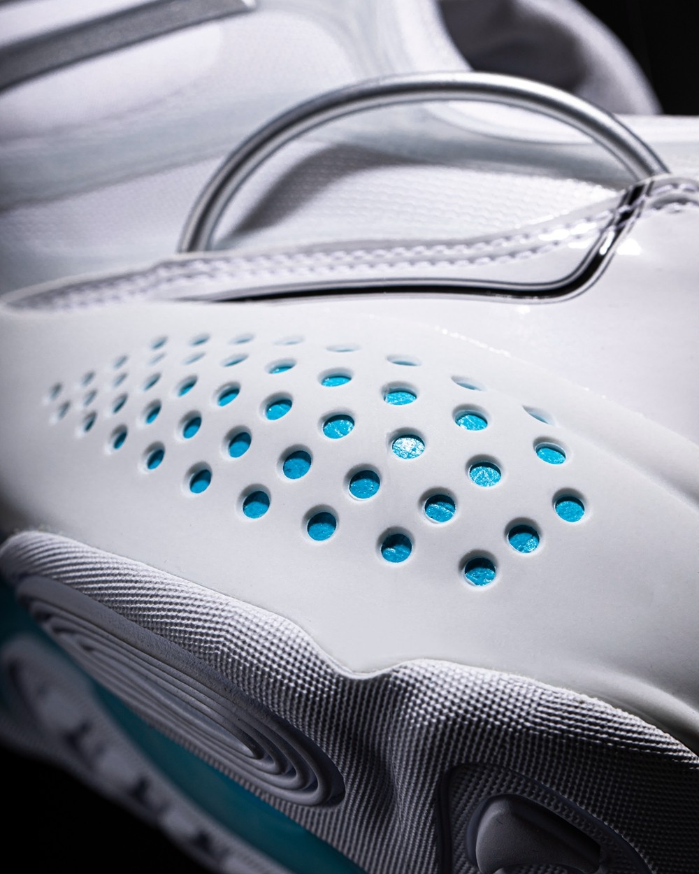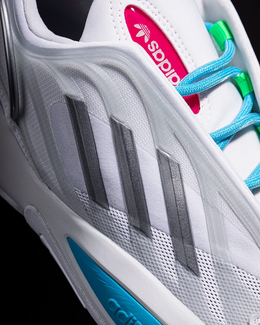 整双鞋以大面积白色示人,辅以几种亮色点缀细节,营造出极具科技感的视觉效果。