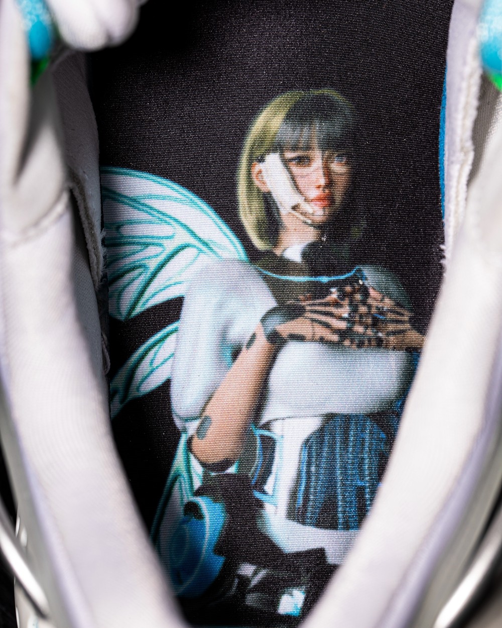 左右鞋舌分别镶有双方标识,彰显联名身份。