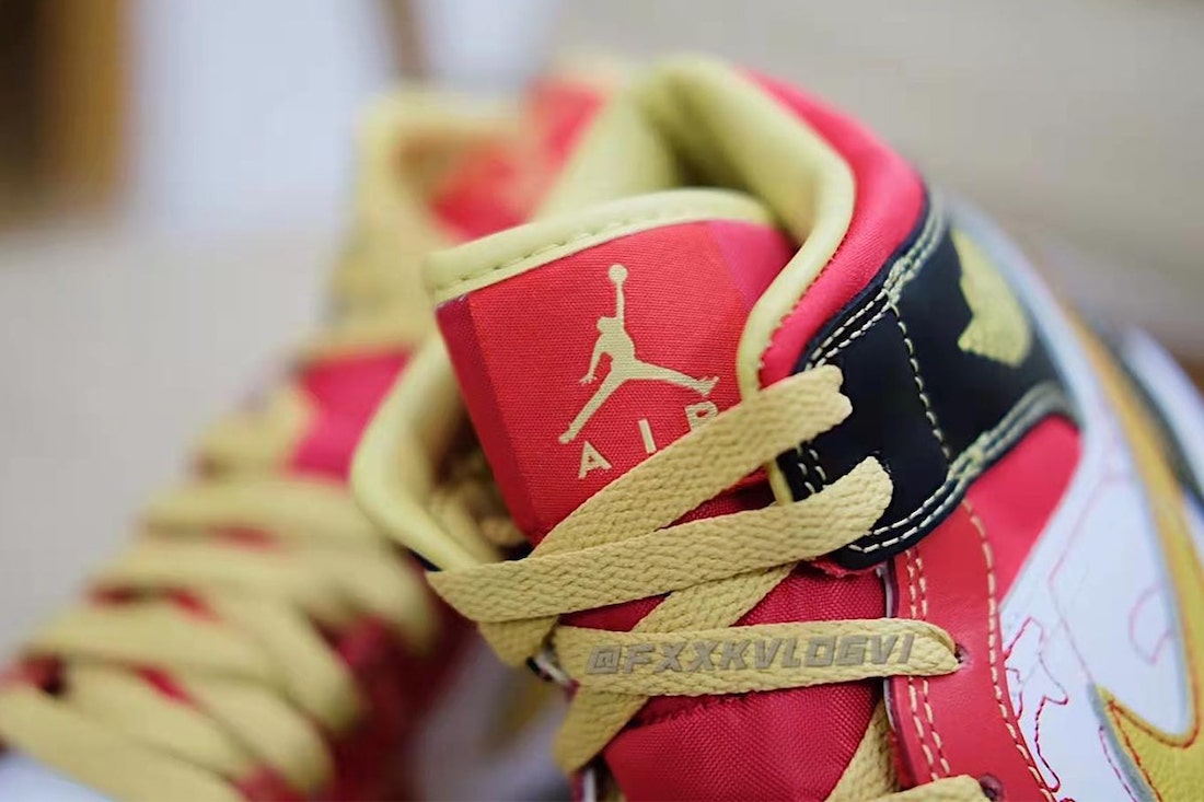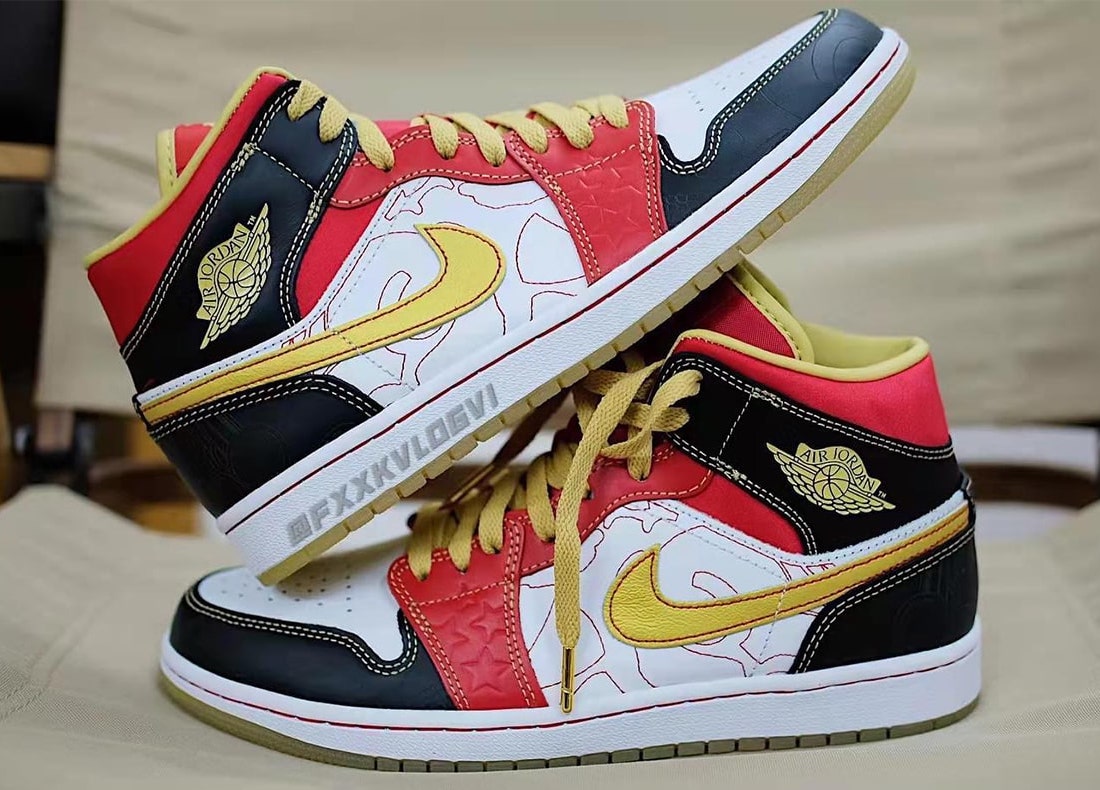 采用红配金的华丽装扮呈现,鞋身采用镭射皮革搭配绸缎材质打造,细节注入五星压印、龙纹等元素,算是最早的中国独占 Air Jordan 限量球鞋,意义非凡。