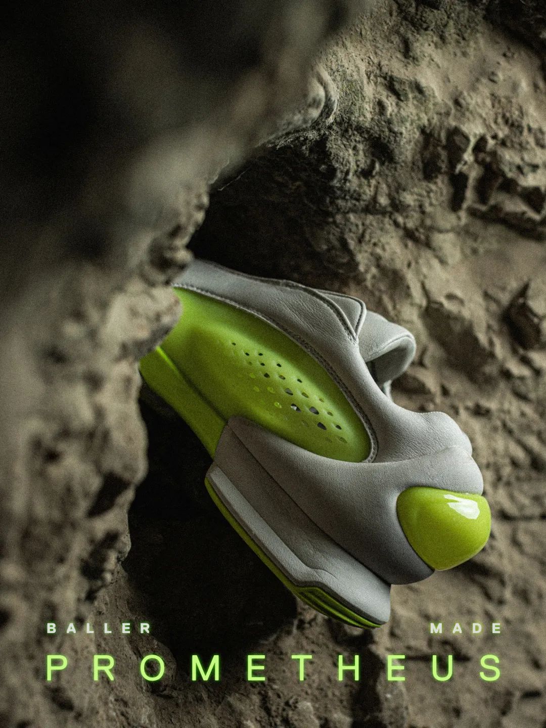 首发纯白配色上架秒售罄,近期第二款「普罗米修斯」配色即将发售,采用纯白注入荧光色调,皮质鞋身嵌入参数化异形生物设计语言的立体镂空设定,整体线条简约流畅,同时散发出未来的科技感。