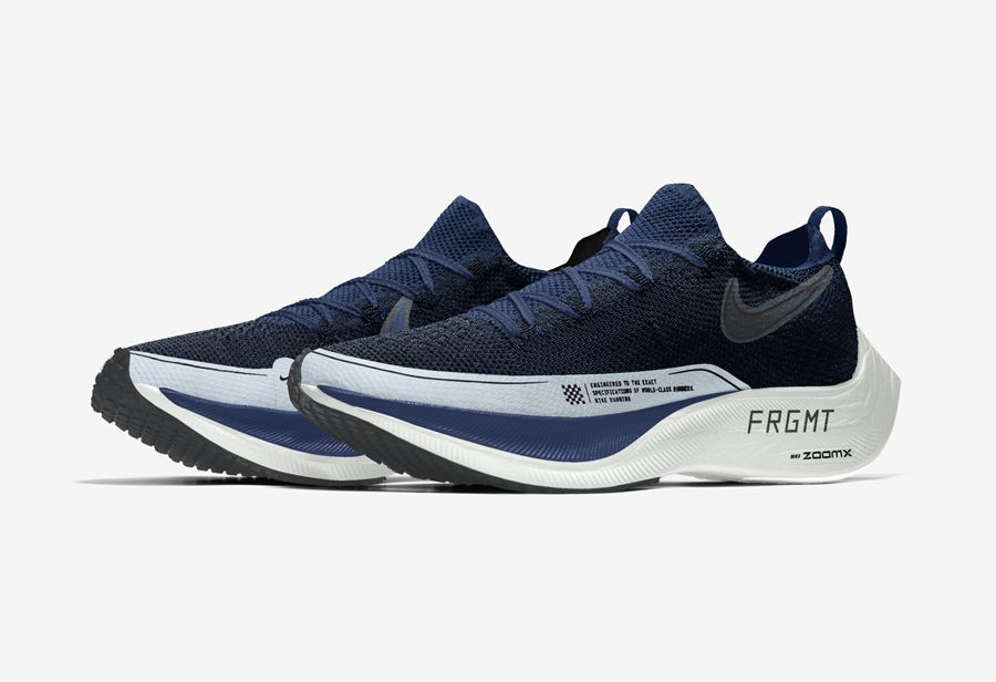 整双鞋采用藏蓝色与米色装扮,并在鞋头部分饰有白色类似油漆条的图案,鞋面由织物材质打造,搭配奶油色 Zoom X 缓冲大底,后掌部分饰有 “FRGMT” 字样,整双鞋只有后跟处的 “FRGMT” 字样,还可以体现这双鞋是出自藤原浩的作品。