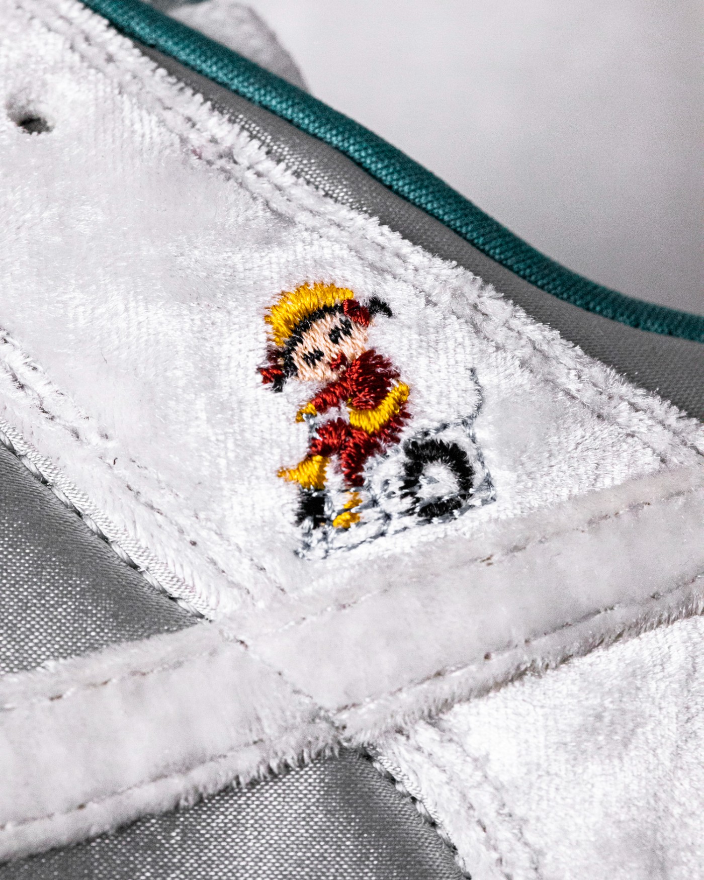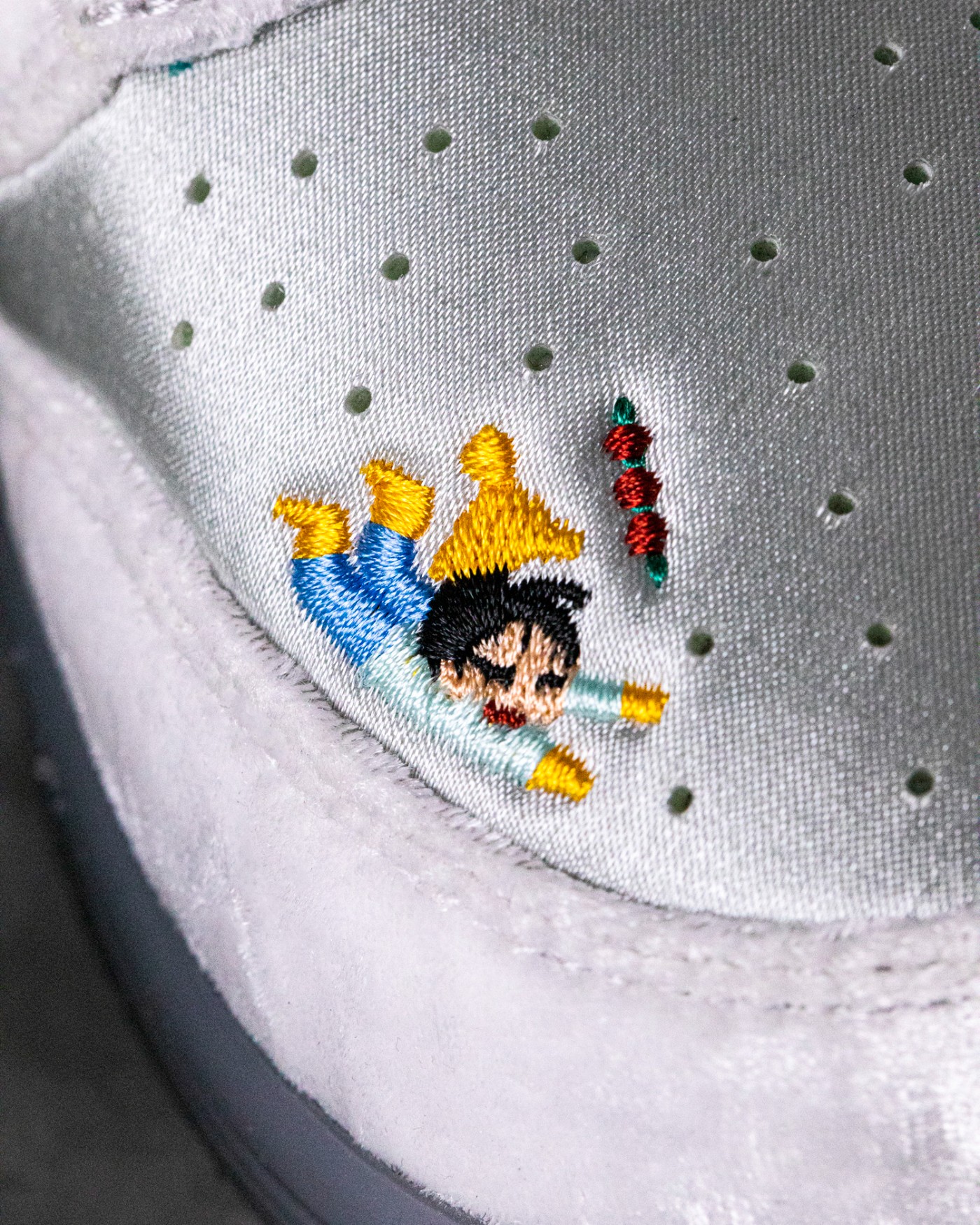 鞋身内外两侧的多个部位都有卡通刺绣图案,代表着滑冰车等各种冬季娱乐活动,通过刺绣图案和特殊材料还原出与家人朋友在滑冰场游玩的欢乐场景。