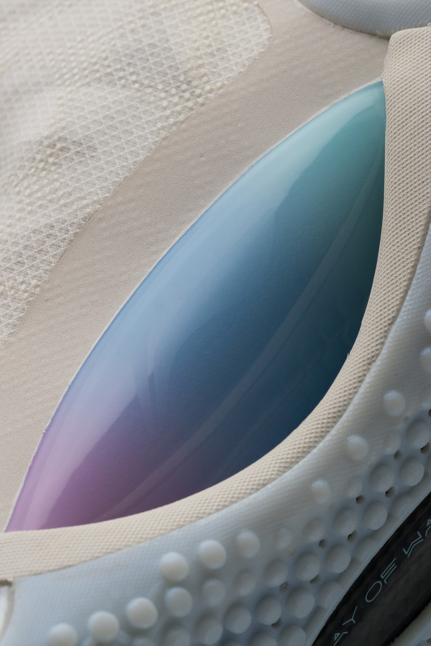 棉花糖的标志性渐变设计,点缀在中底承托盘和鞋面拉链部分。