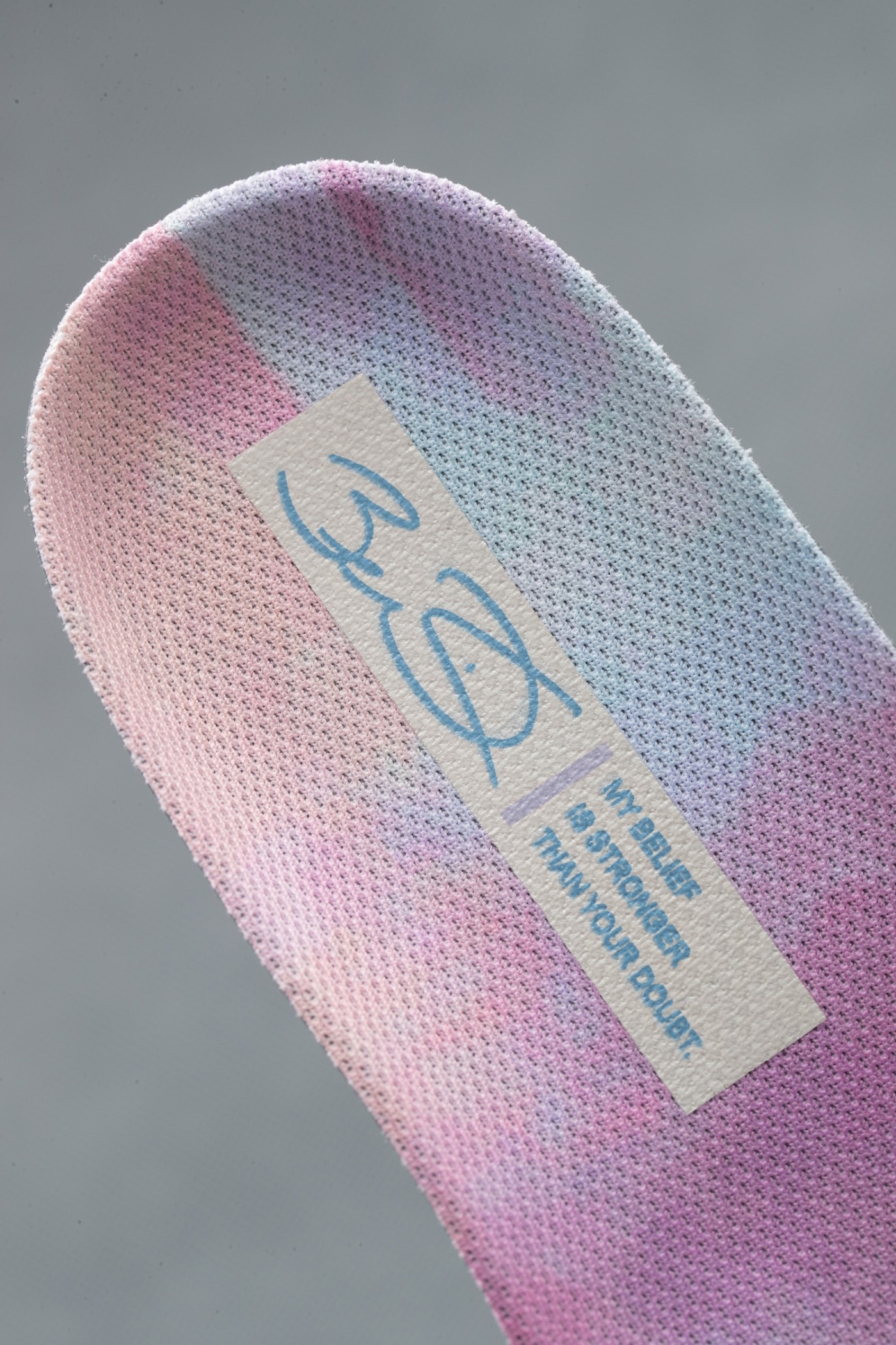 鞋垫则满印棉花糖色系的扎染图案,呼应配色主题。