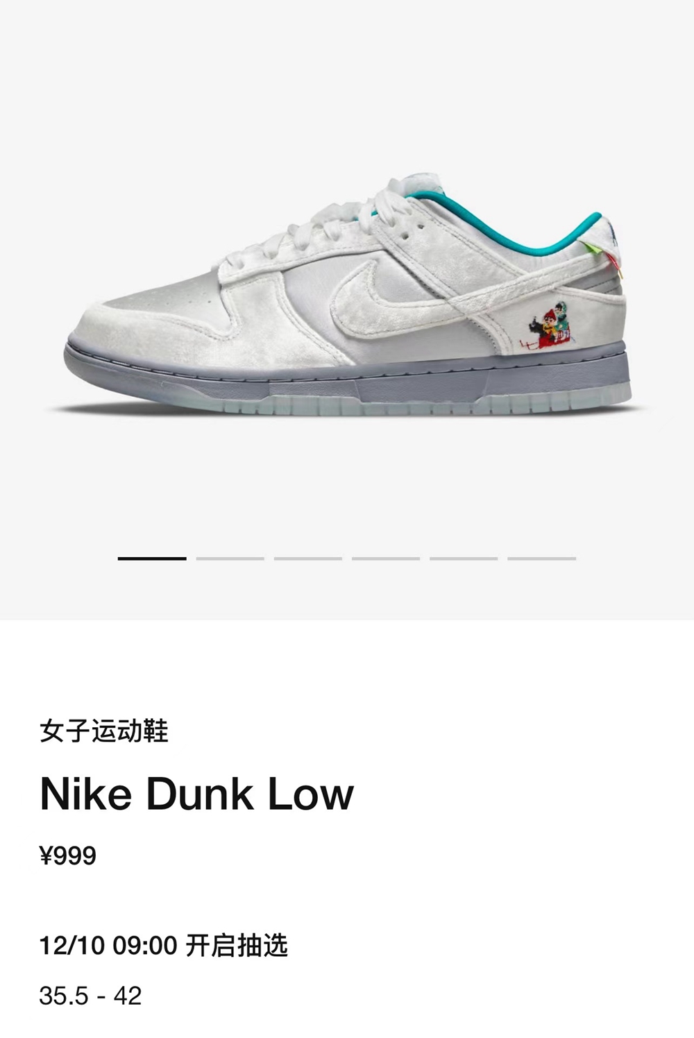 据悉,全新 Nike Dunk Low “Ice” 将于 12 月 10 日上午 9 点开启抽签,但可惜仅限女码,发售价格为 ¥999 元,小编在这里祝大家好运。