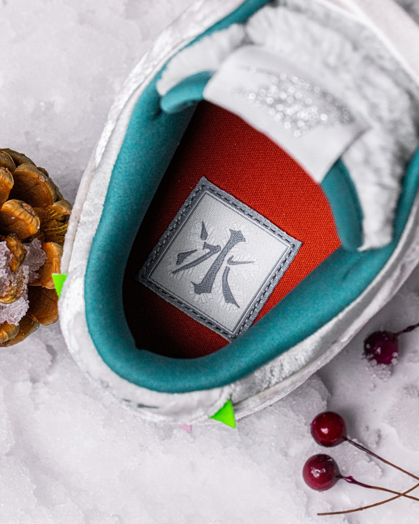 鞋垫上还缝有汉字「冰」,呼应配色主题。