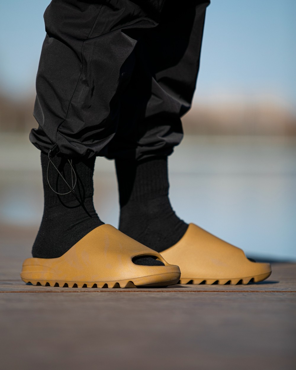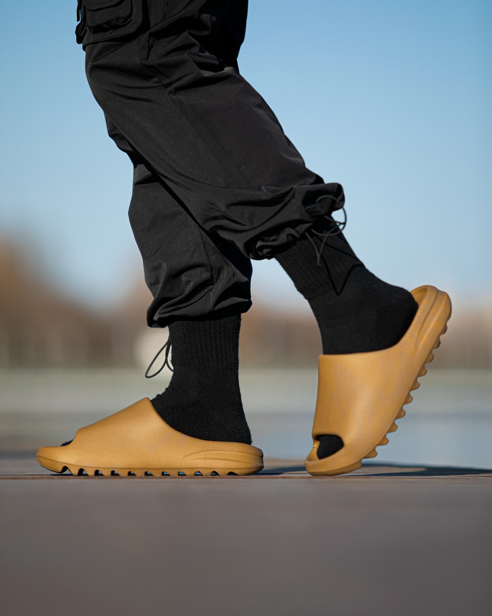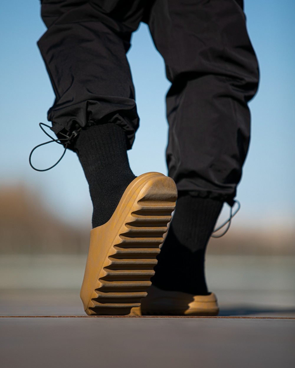 YEEZY SLIDE 从去年刚推出起,就凭借前卫的外形和舒适的脚感而备受好评,而全新的 “OCHRE” 还选择了流行的大地色调呈现。