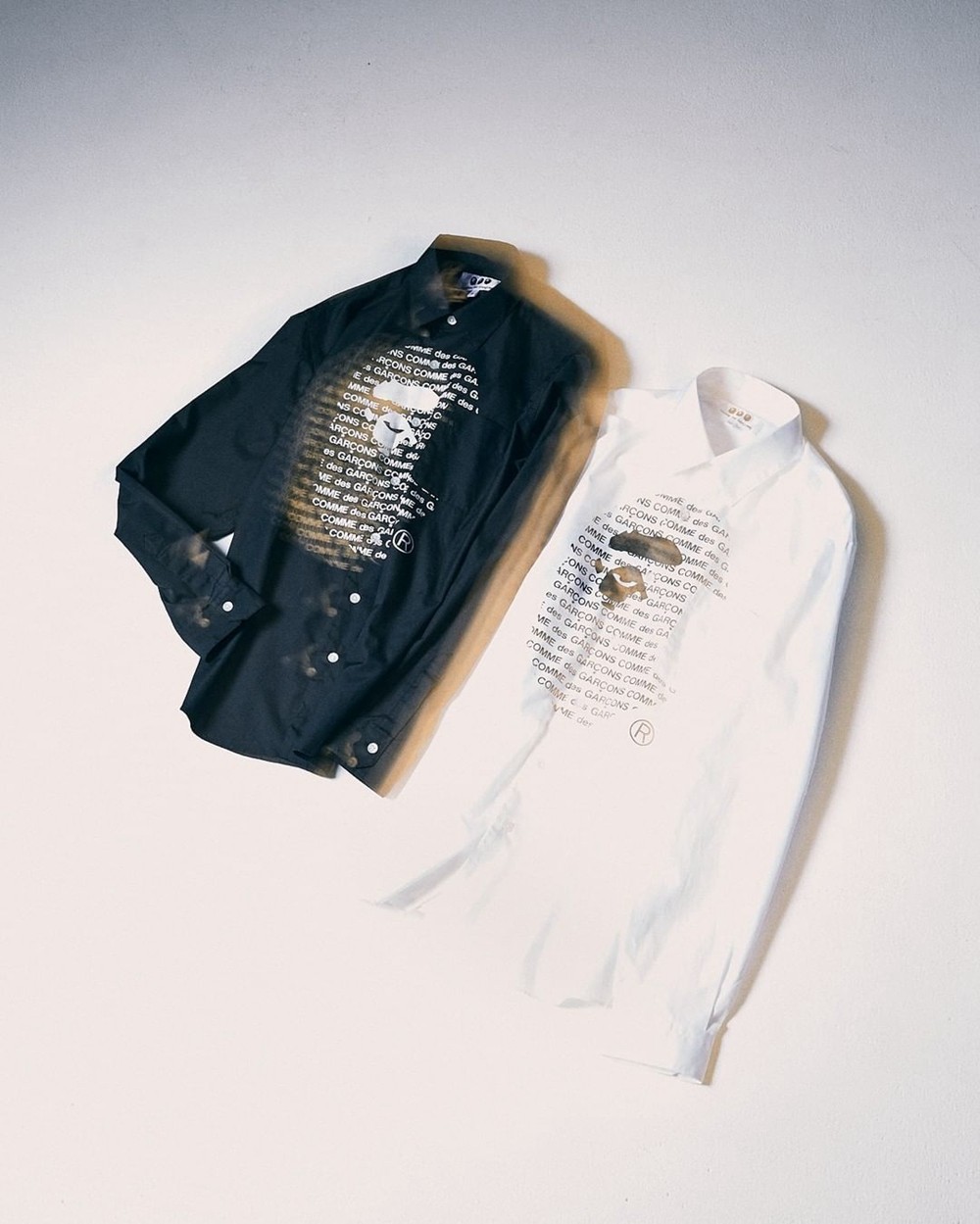 长袖衬衫最大的亮点在于,以 COMME des GARÇONS 字样组成的猿人头像,看似简洁但又很有特点。