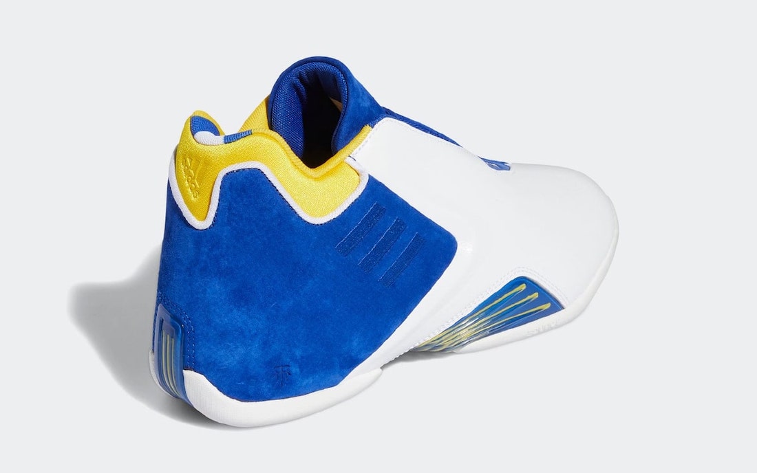 配色灵感来源于麦迪高中生涯前三年的效力球队,白、蓝、黄的撞色设计十分亮眼。