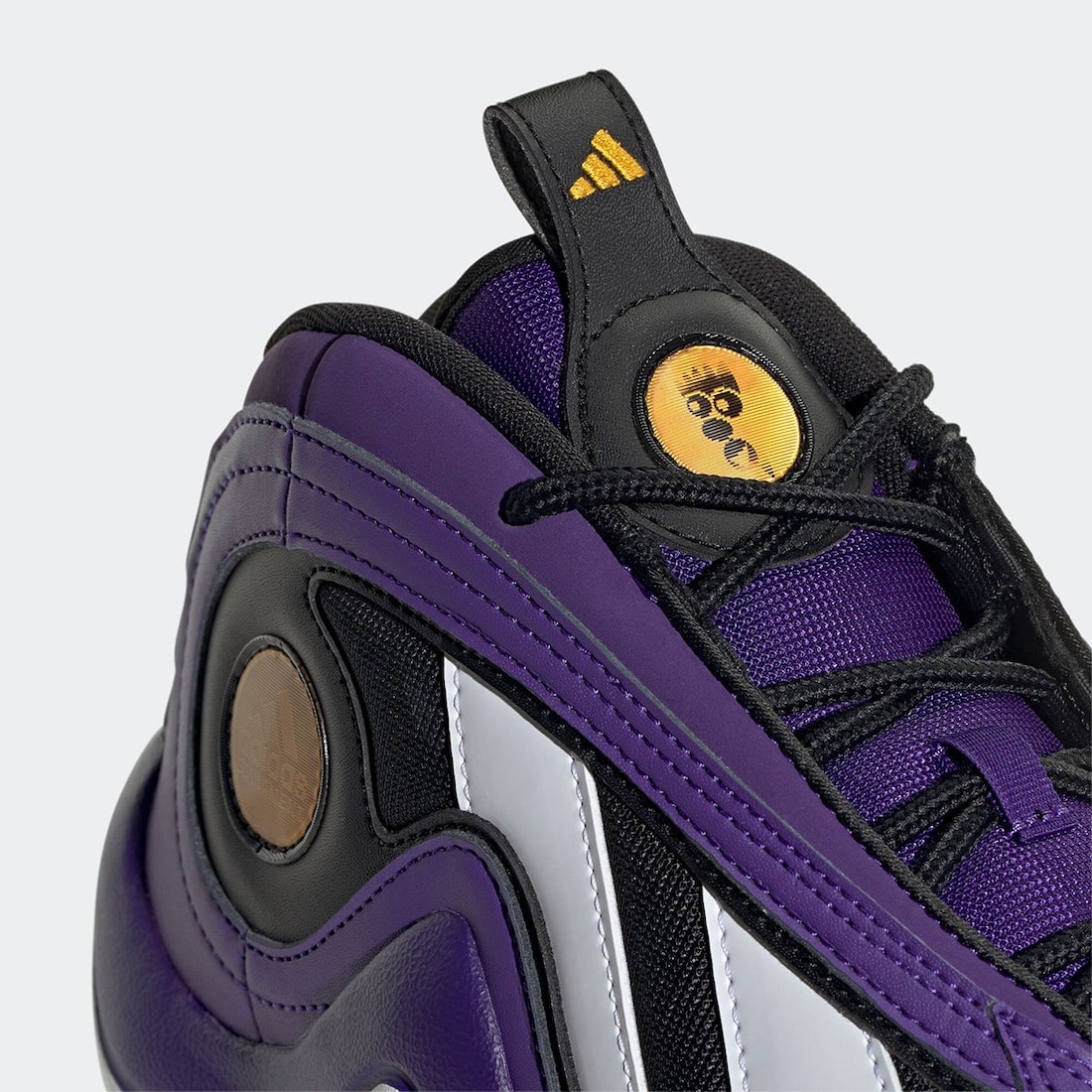 不对称鞋面外侧白色三线营造犀利的速度感,鞋帮处圆形闪卡与鞋舌相呼应,adidas Logo 与天足鞋底笑脸随视角不同而变幻。