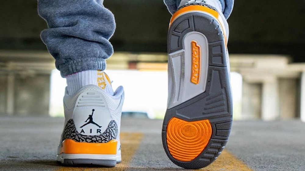 后跟位置的爆裂纹搭配一抹黄色,呈现出 Air Jordan 3 的经典气质,颜值同样不俗。
