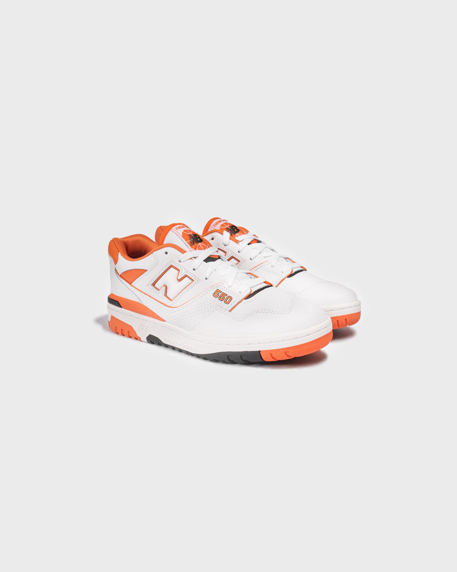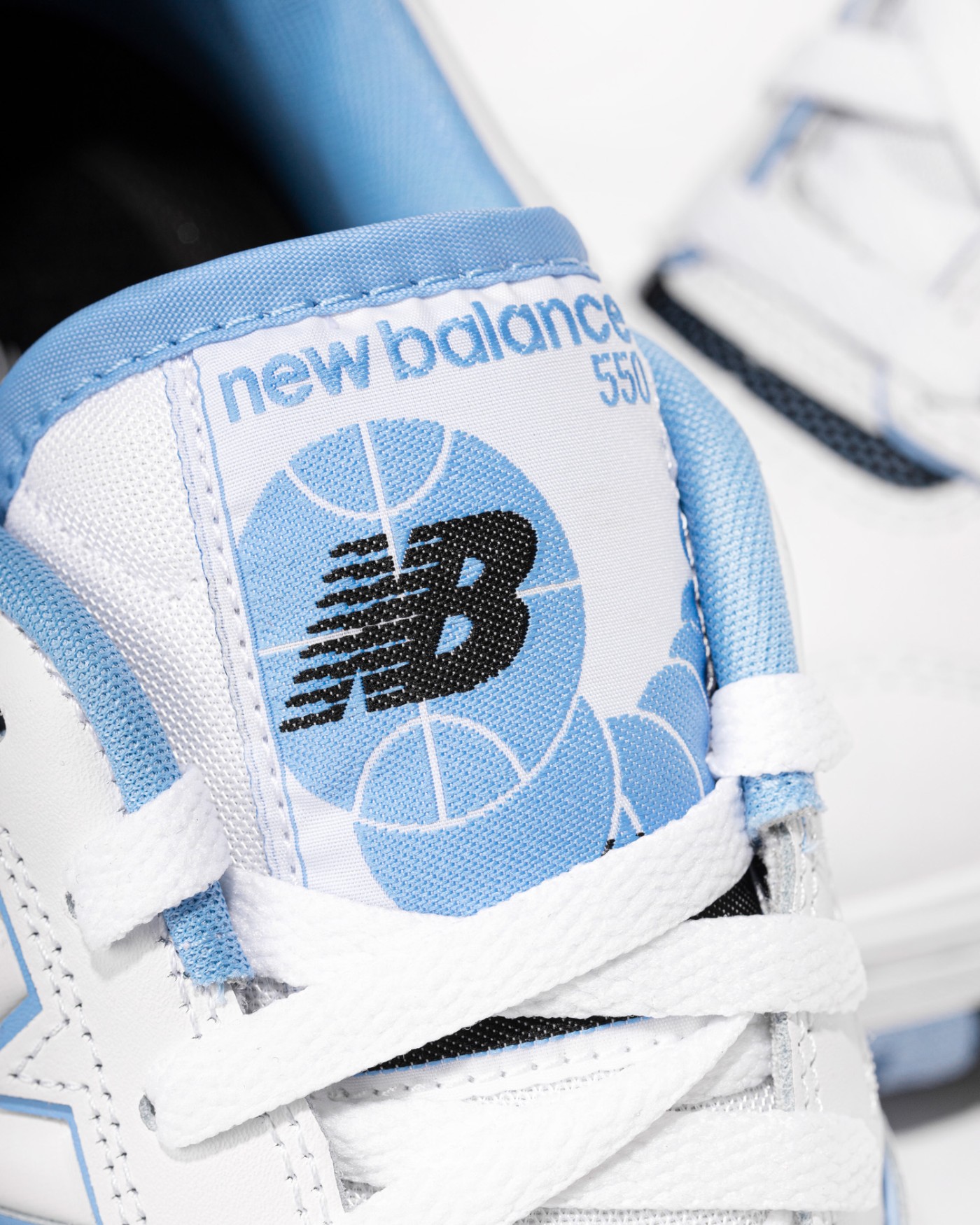 与之前的配色不同,这次 New Balance 550 鞋舌处改为篮球图案 Logo,彰显复古篮球主题。