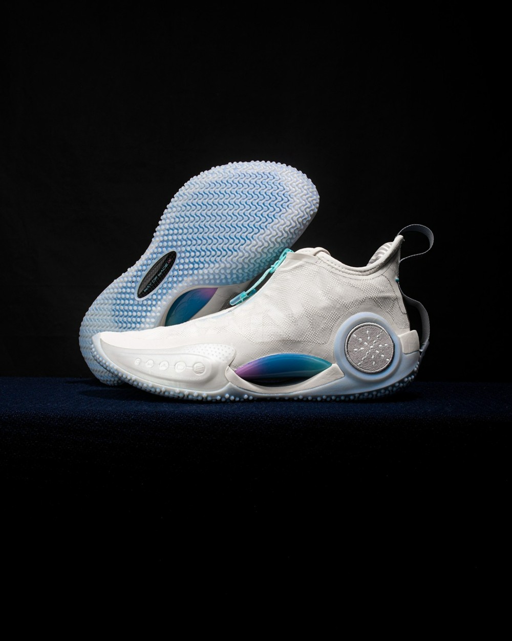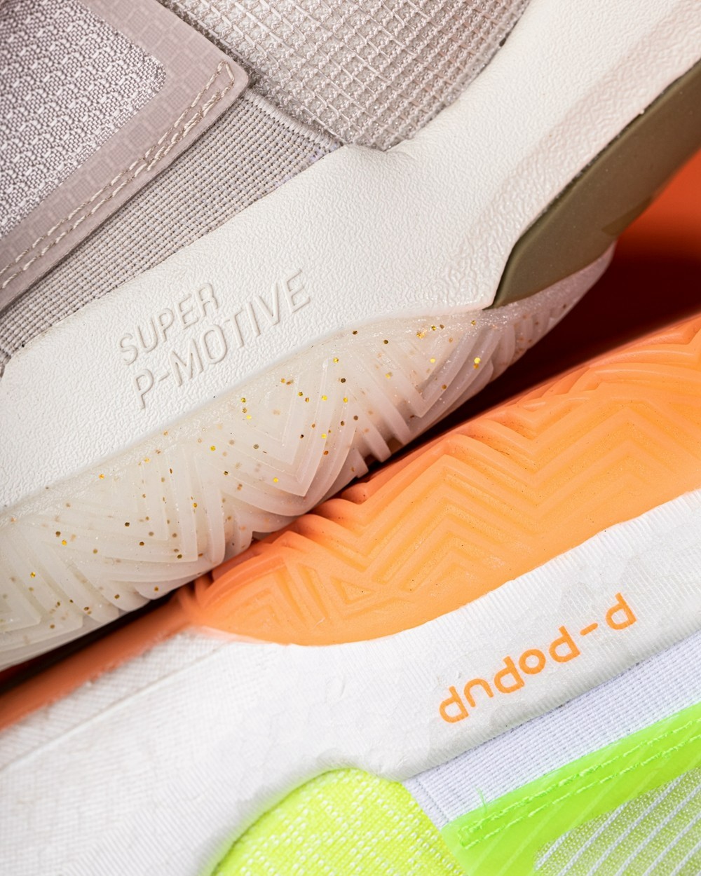 这双全方位升级的态极大三角的中底由全掌 P-POPUP 澎湃科技改为超级魔弹科技 + 轻量化态极科技,并加入全新 “一模双密” 技术打造。