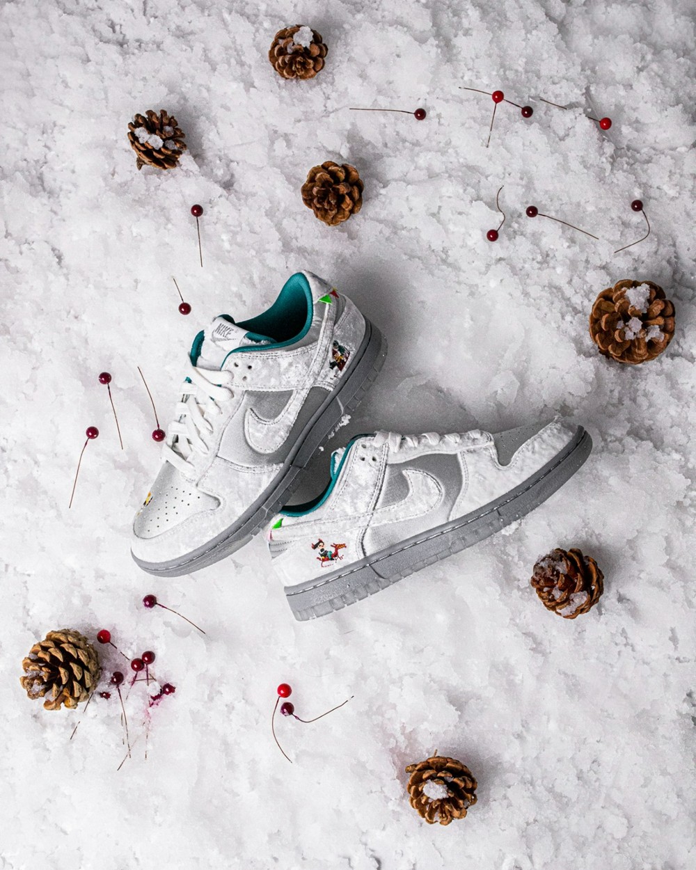 冬日主题的 Nike Dunk Low “Ice” ,整体风格像是将「情人节」、「冰雪奇缘」两款超人气配色合二为一,但因是女款定位男码很少,导致如今市价翻五倍,相当夸张。