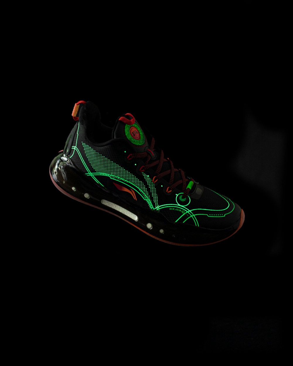 鞋面线条及 Logo 都是用夜光材质打造的,能够在夜里散发光亮,同 “暗火” 的名称十分契合。