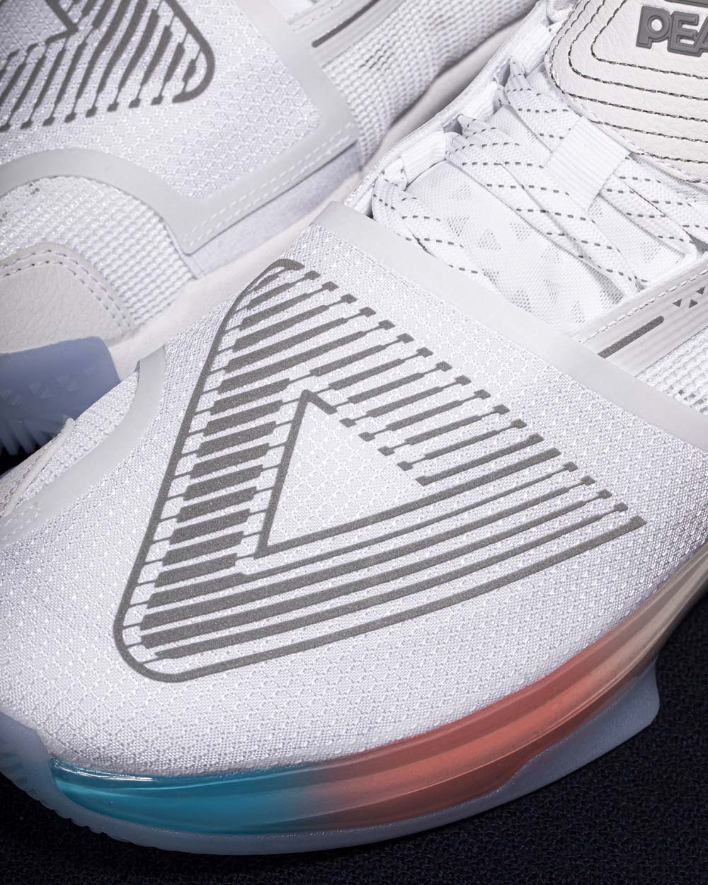 鞋面采用了全新的 Surface 科技包裹住鞋头,减轻整双鞋的重量同时,提升耐折性与透气性,全方位加强鞋面包裹,醒目的匹克三角形 Logo,也带来极强的辨识度。