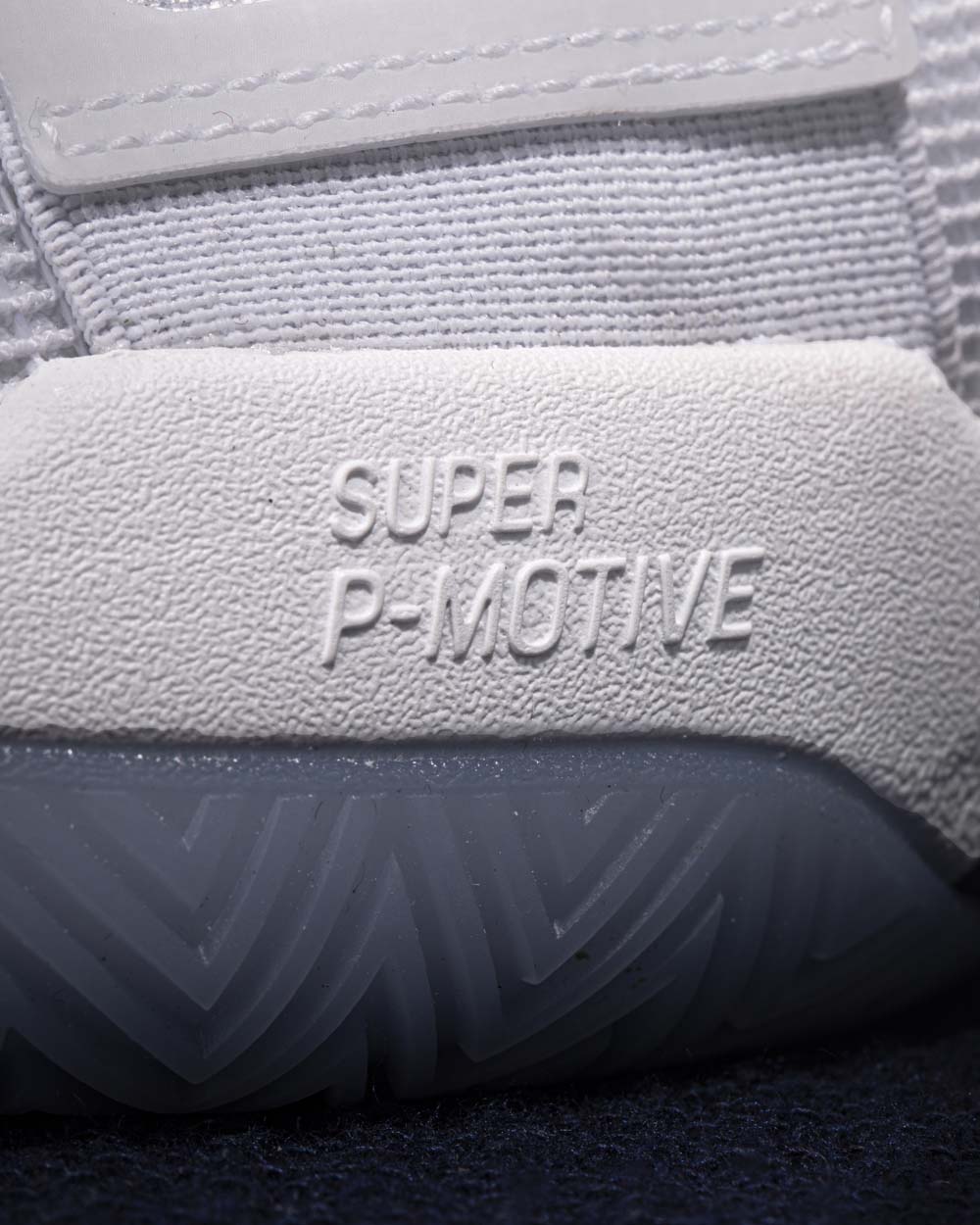 前掌侧方印有 SUPER·P-MOTIVE 字样,超级魔弹科技使用回弹率高达 65%,启动迅捷响应灵敏。