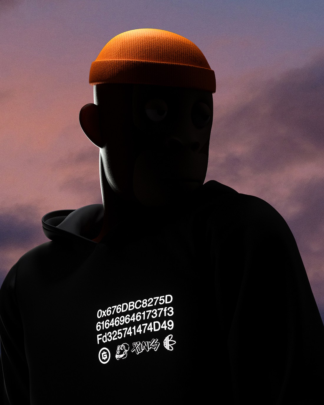 此次 adidas Originals 的设计灵感主要来自与和元宇宙中的 IP、品牌合作,包括 NFT 先驱 Bored Ape Yacht Club、gmoney 和 PUNKS Comic 背后的团队。