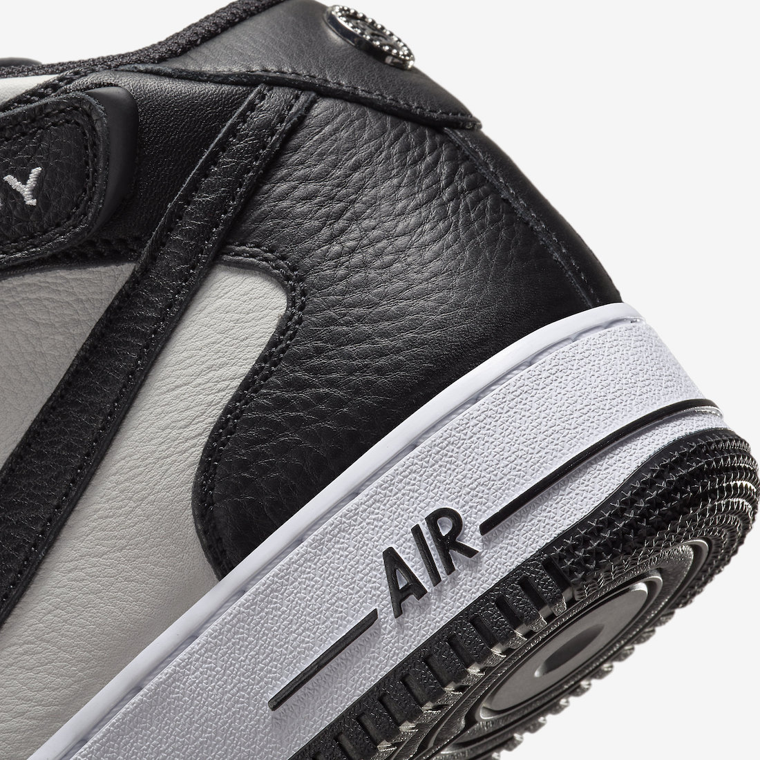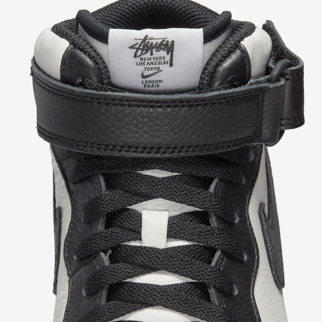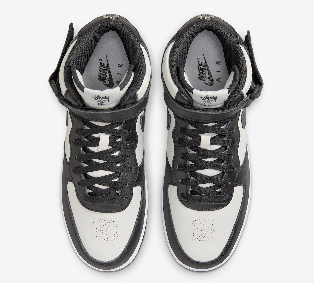 本月初一双全新 Stüssy x Nike Air Force 1 Mid 首次曝光,近日黑白配色的官图正式释出,同时还有一款纯黑鞋面配色曝光。