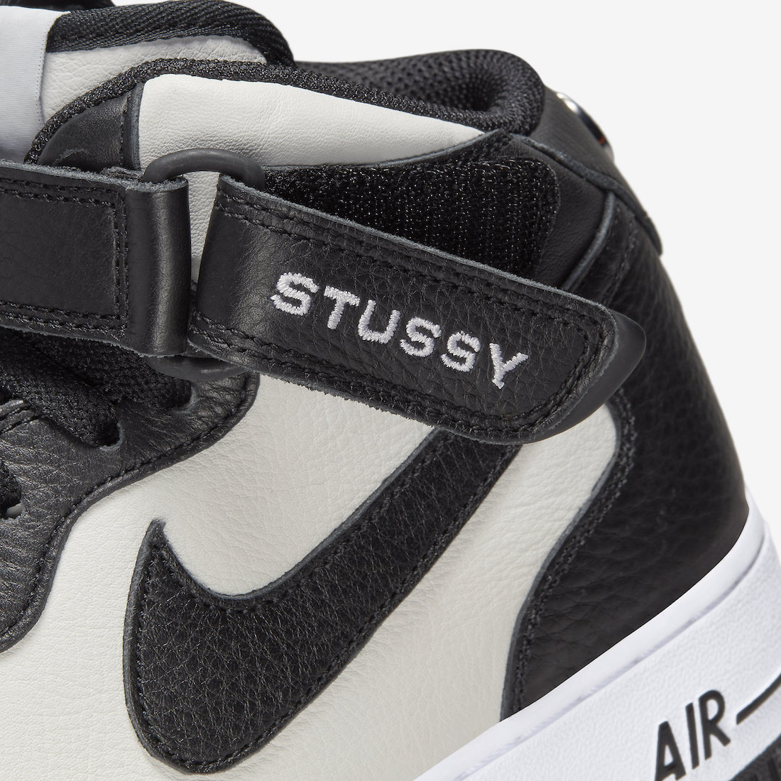 鞋帮魔术贴上刺绣有 “STUSSY” 字样;后跟的金属 Logo 与之前的联名款 Air Force 1 Low 相同,