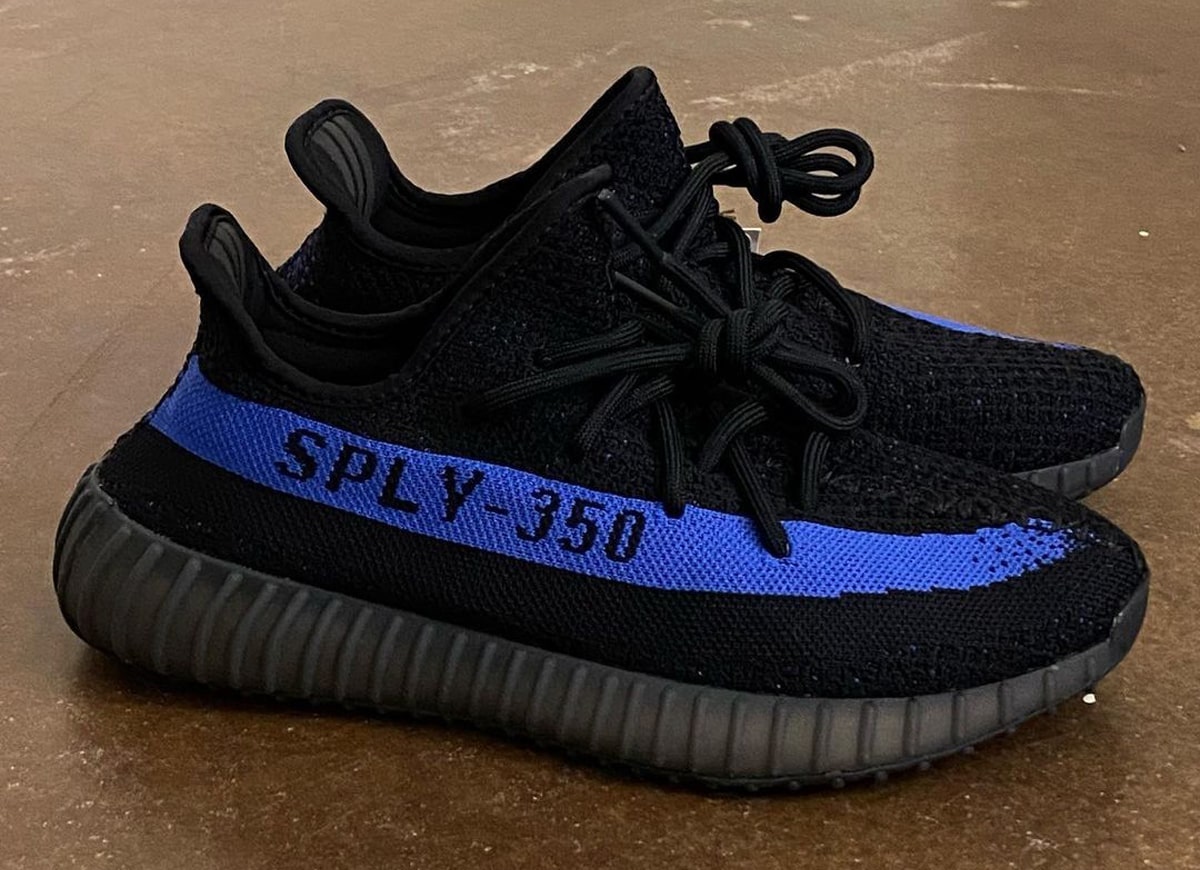 另一双 “Dazzling Blue” 则是黑粉、黑铜、黑绿之后又一双相似风格的新配色,纯黑色编织鞋面搭配醒目蓝色油漆条,衬托黑色 SPLY-350 字样。
