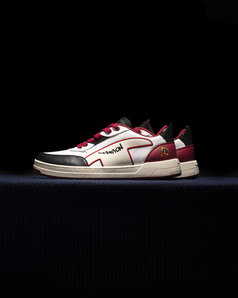 鞋侧以定制虎纹填充融合 Champion Logo 呈现,进一步呼应鞋款主题。