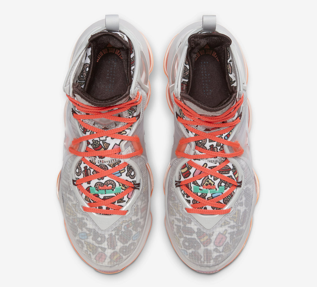 鞋舌灵感来自詹姆斯喜爱的食物,融入汉堡包,炸薯条,比萨,冰淇淋等装扮,十分讨喜。