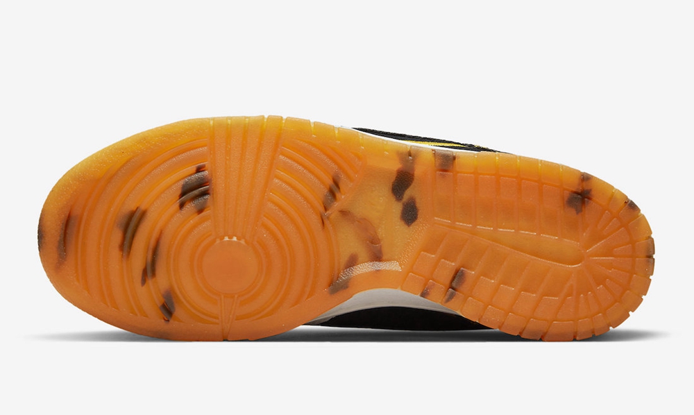 最大的亮点在于鞋面的大面积虎纹图案,黄色透明外底内印有巨大的飞翼 Air Jordan Logo。