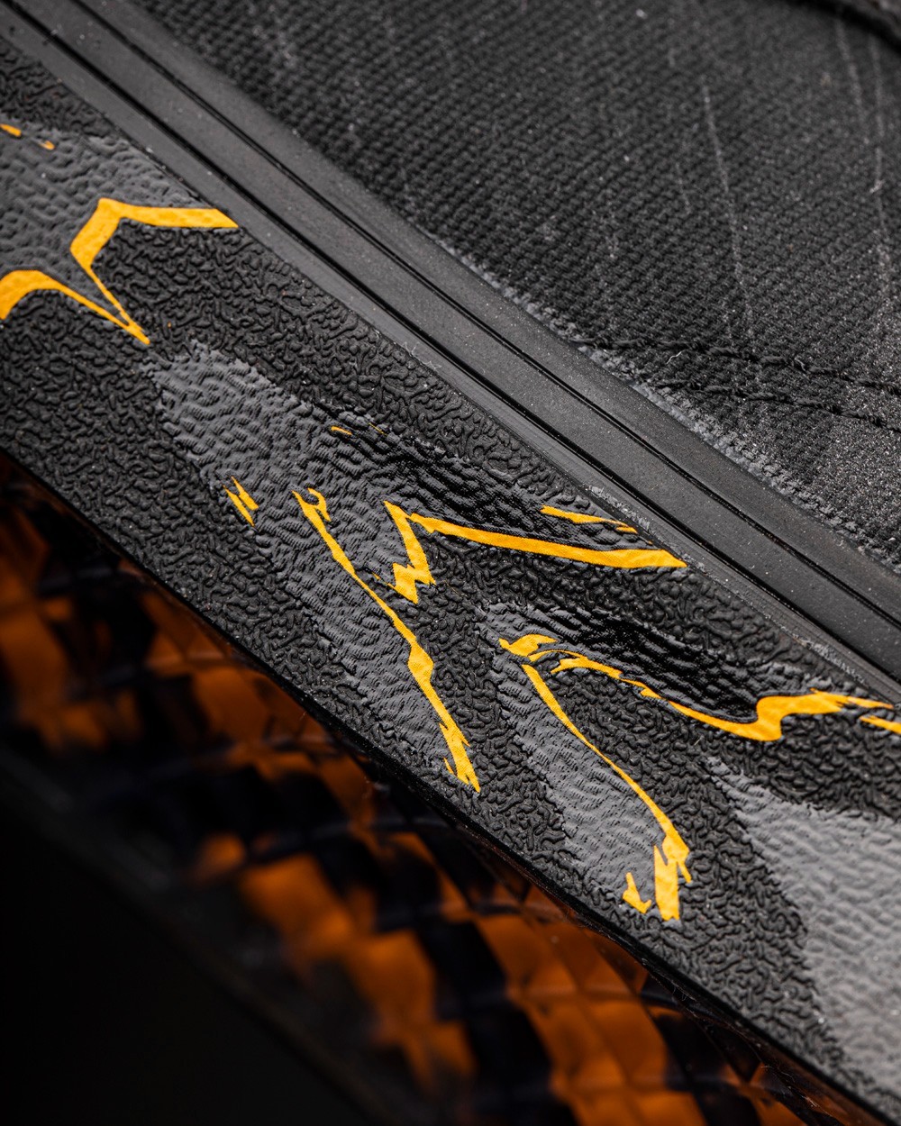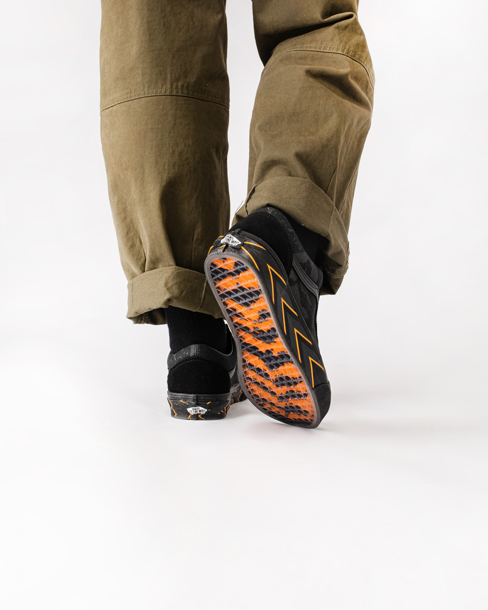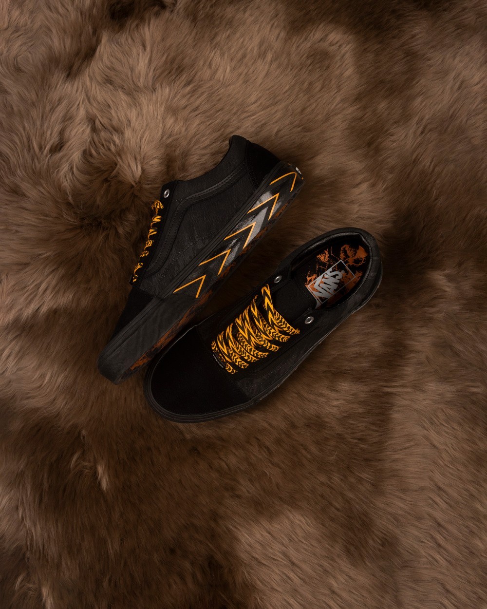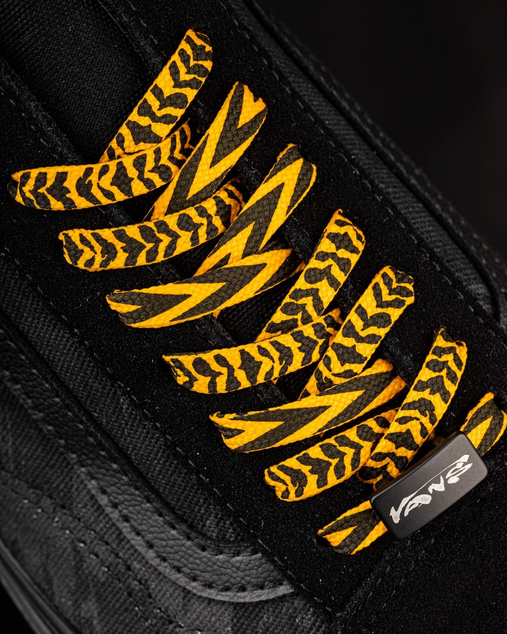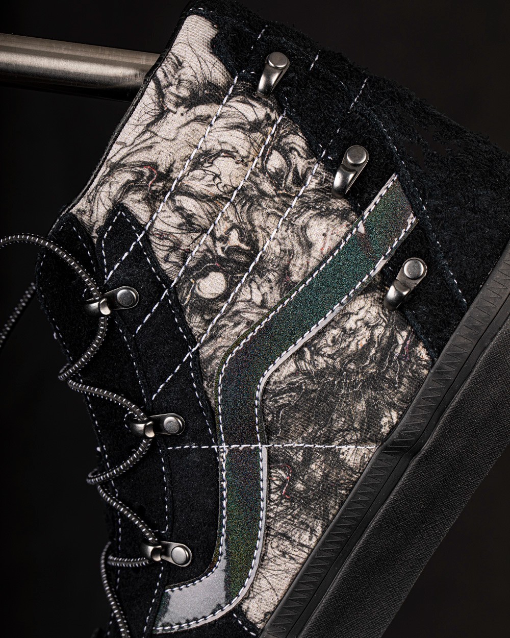 Sk8-Hi Echo DX 在保留 Sk8-Hi 鞋型轮廓的基础上,将鞋身各部位重塑,勾勒出老虎隐匿于黑暗中的场景。