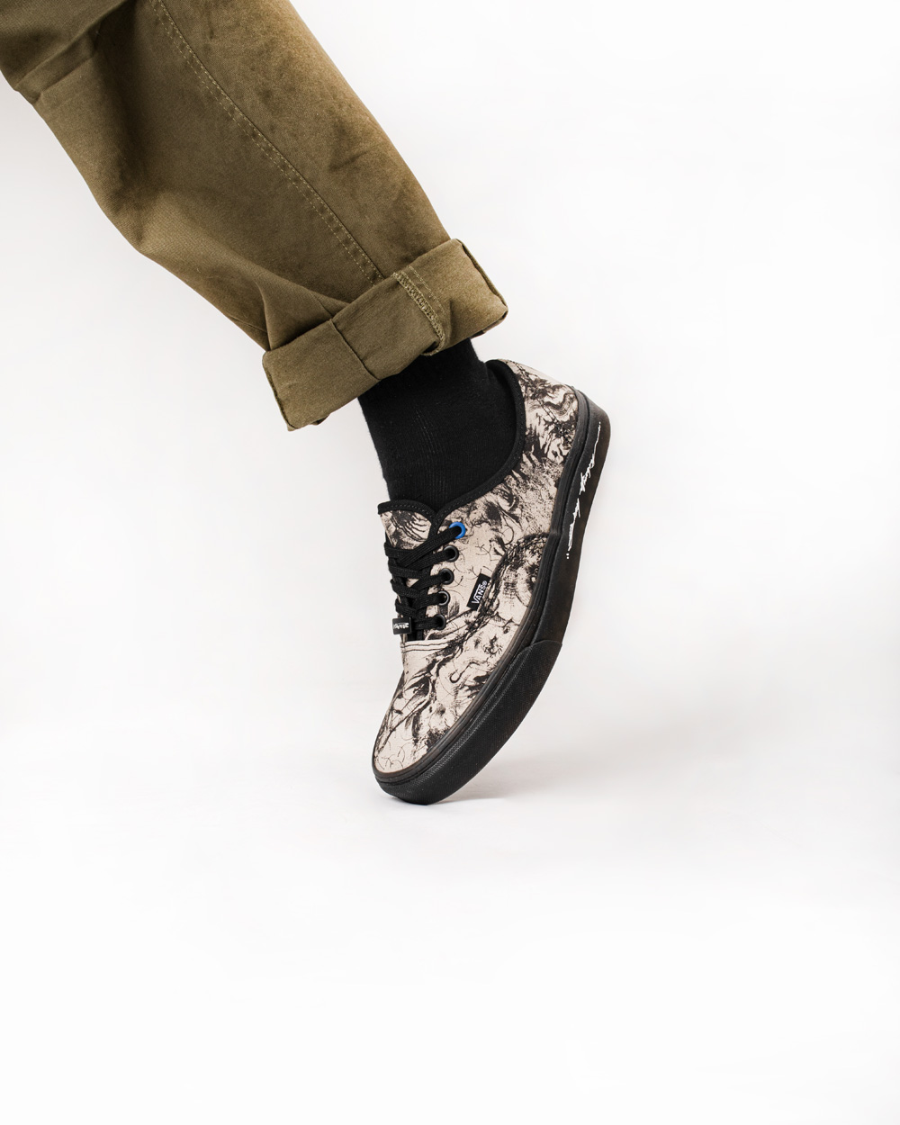 这位来自顺德的 90 后中国当代艺术家陈英杰(HUATUNAN),将中国文化融入画作并加以诠释,结合水墨画与涂鸦两种绘画艺术方式注入 Vans 经典鞋款。