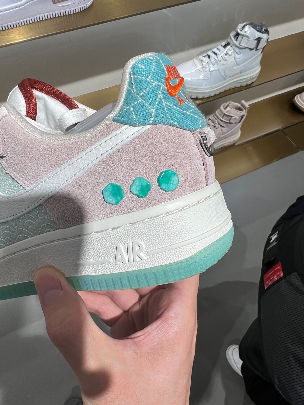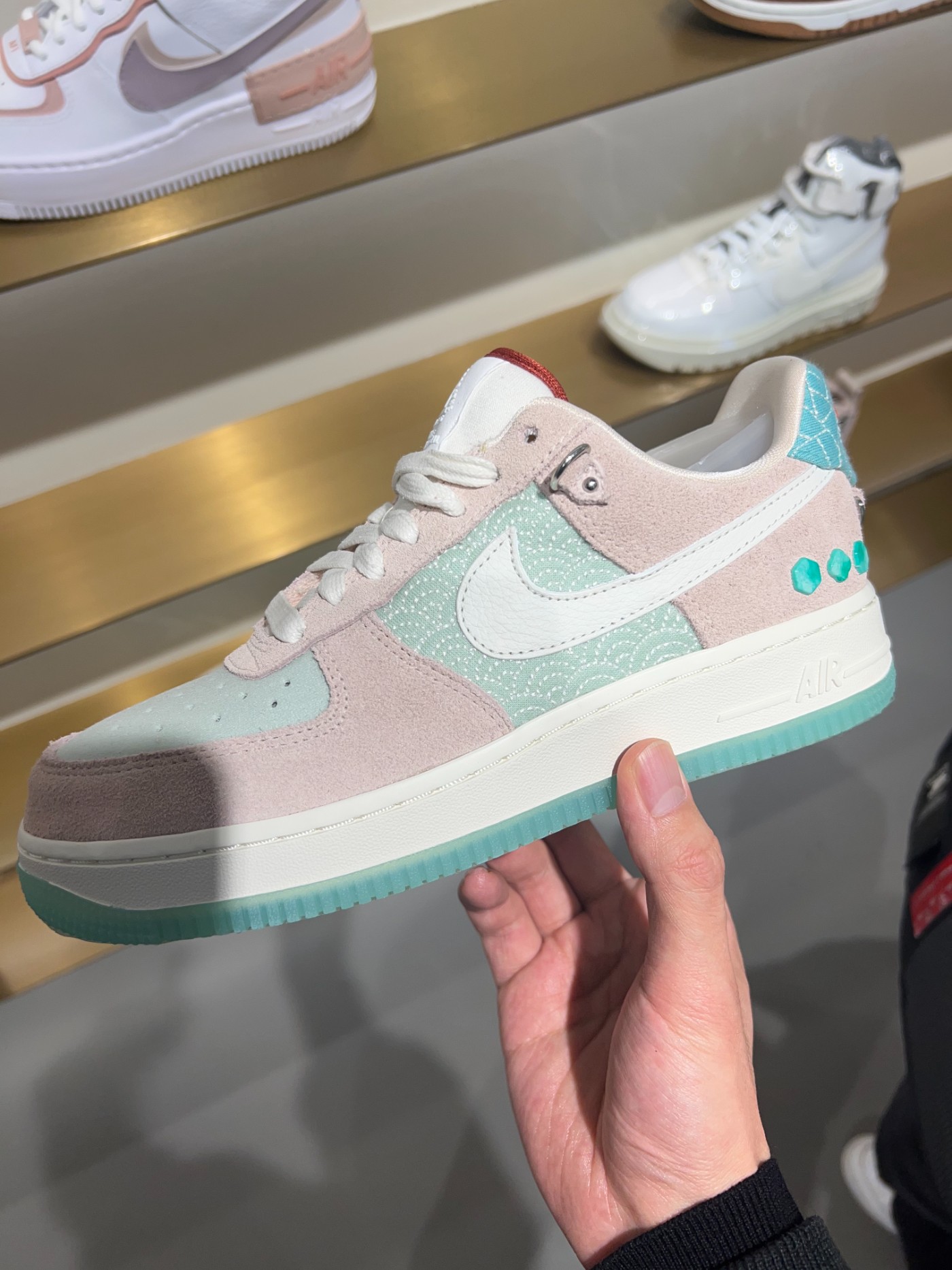 同时 Nike 还有不少中国风新鞋都在新年之际亮相,近日小编在逛街的时候就偶然发现了一双中国玉主题的 Nike Air Force 1 提前在店铺上架。