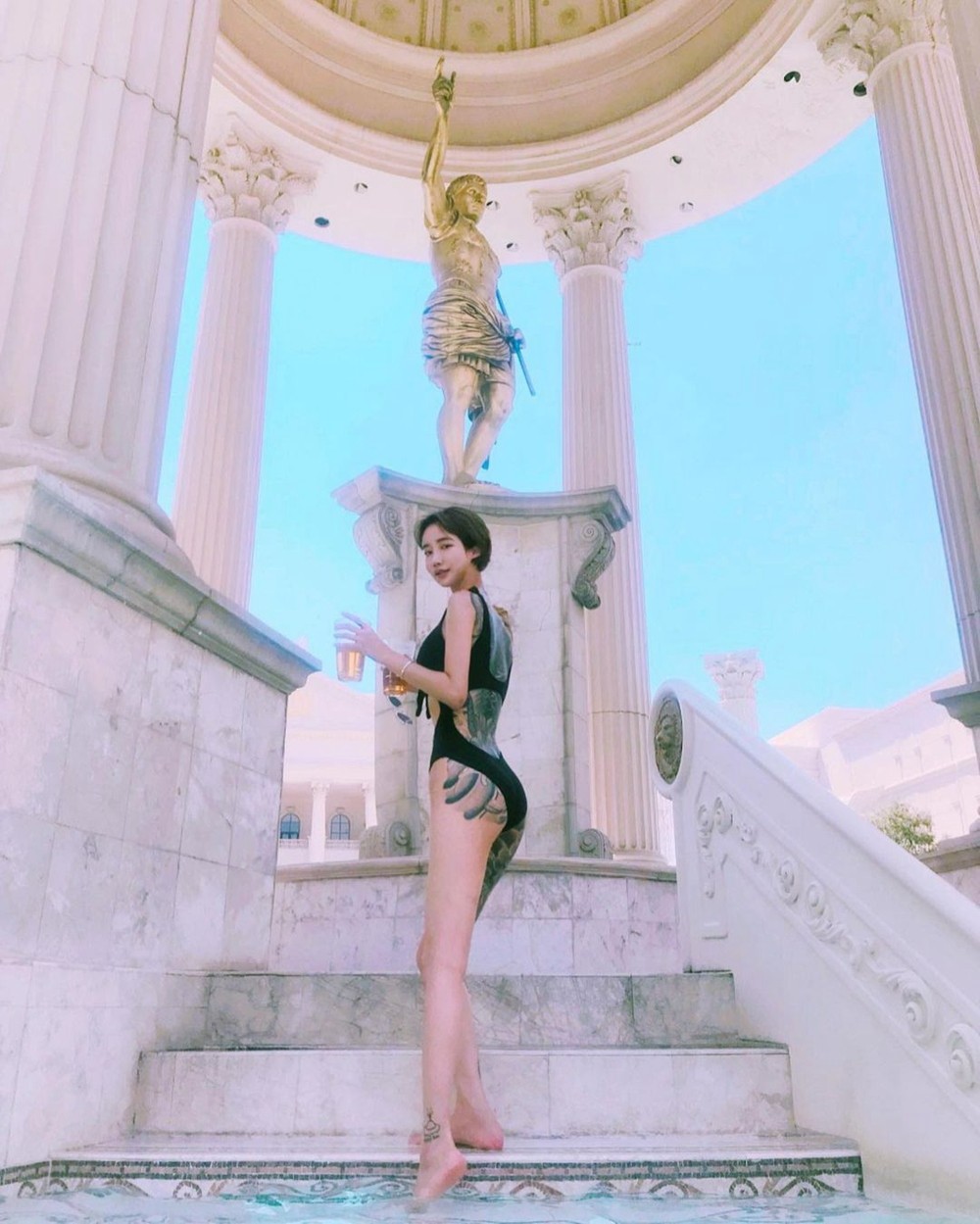 但当看到她铺满后背的 “画作”,简直和脸蛋形成鲜明对比,又酷又辣!