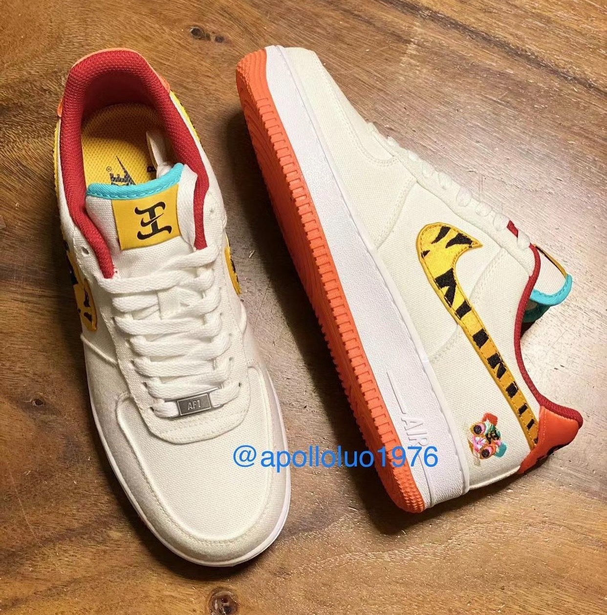 鞋面使用乳白色的帆布面料打造,侧身 Swoosh 选择虎纹丝绒材质,呈现出虎皮质感,后跟极具中国特色的花老虎刺绣点缀是整双鞋的最大亮点。