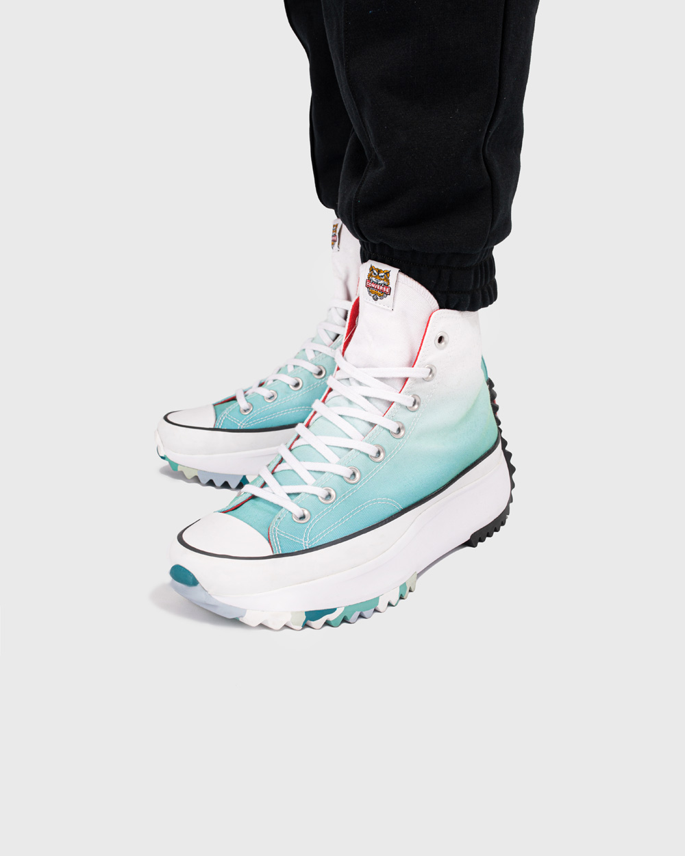 Run Star Hike 鞋面采用白蓝渐变设计,厚实的鞋底带来出众缓震性和增高效果。