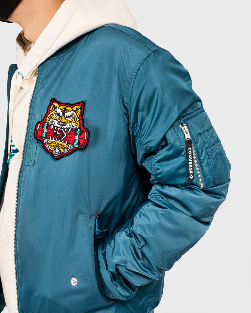 以蓝色为主体,搭配飞行夹克上常见的拉链、魔术贴等细节。