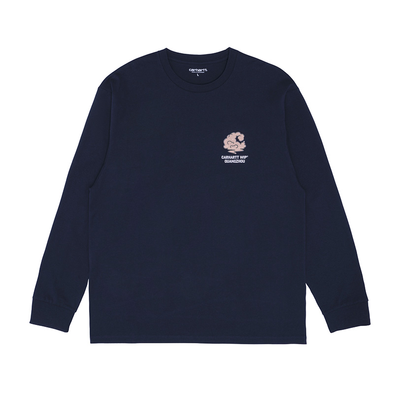 为庆祝广州旗舰店开业,Carhartt WIP 总部设计团队特别发布一组涵盖了白色和海军蓝配色的开业限定长袖 T-shirt。