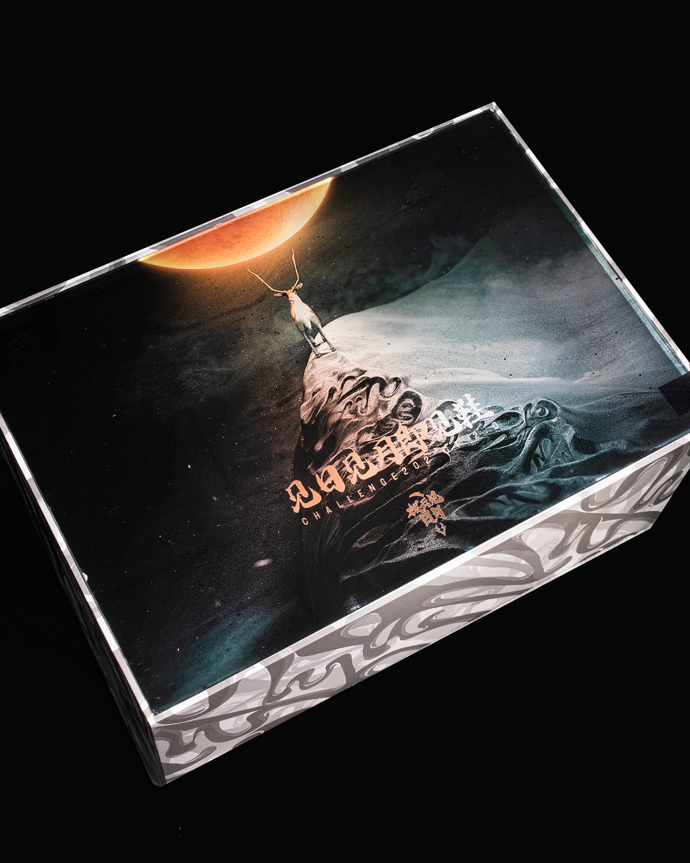 日、月 Logo 内嵌流沙效果,象征马拉松跑者通过坚强意志力,克服诸多杂念干扰,突破自我极限时就像拨开心中迷雾的感受。