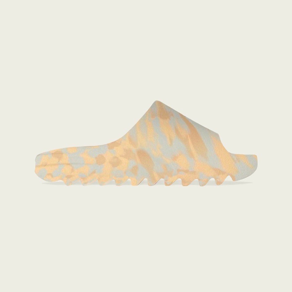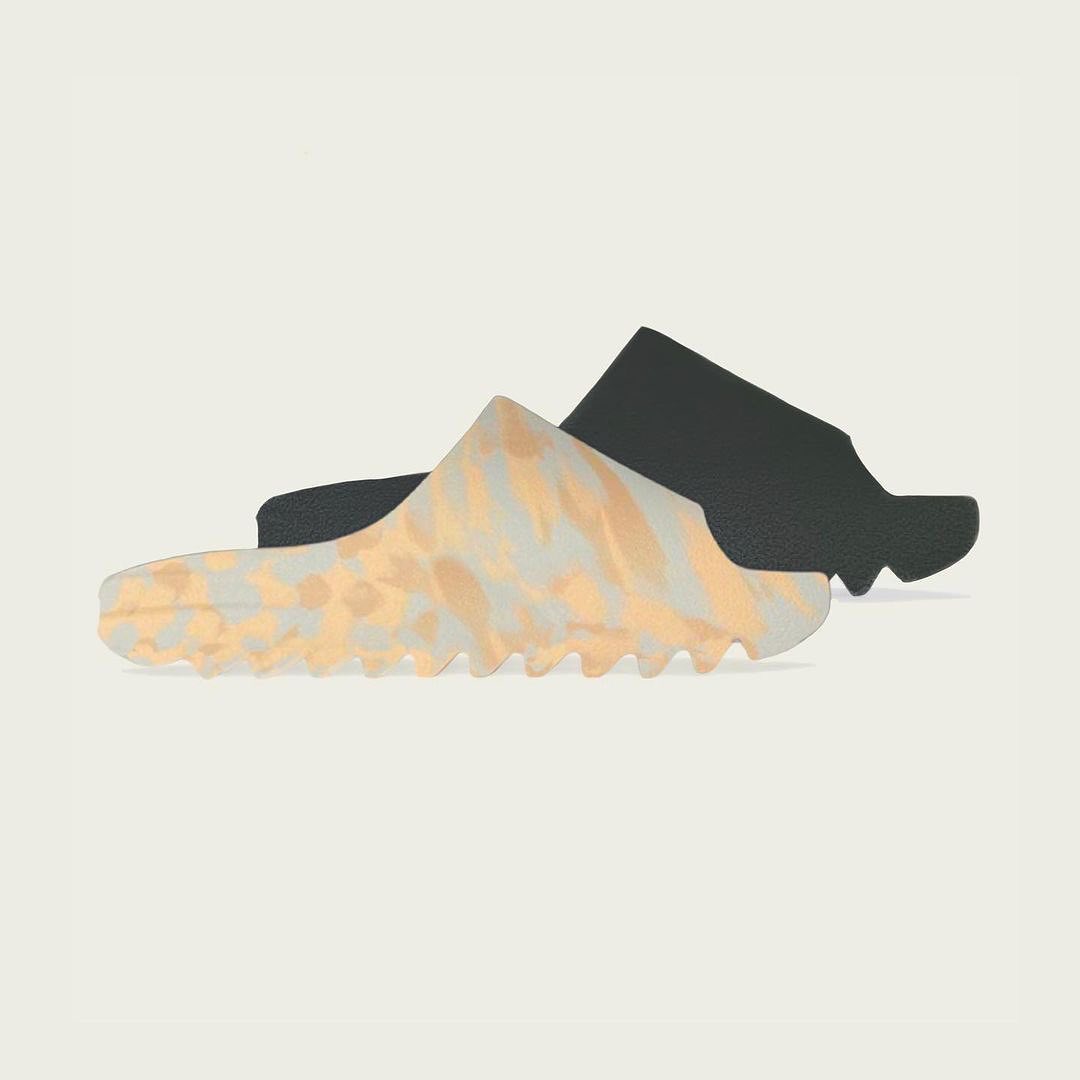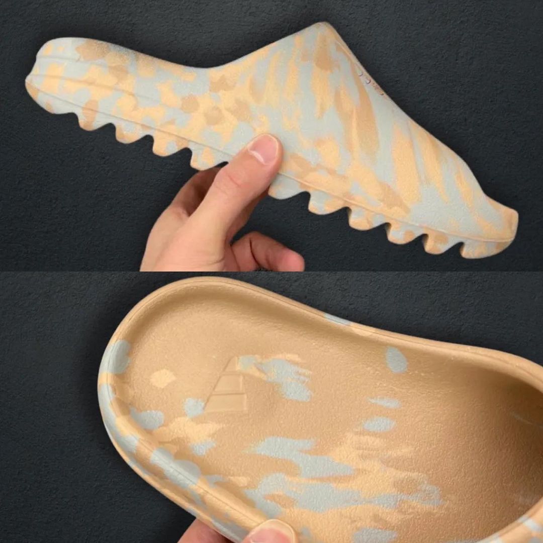 在纯色设计之后,明年 Yeezy 拖鞋还将迎来类似油画风格的混色设计,这双 “MX Slide” 就在沙色基础上加入淡黄和灰蓝色,辨识度增高又不会太难驾驭。