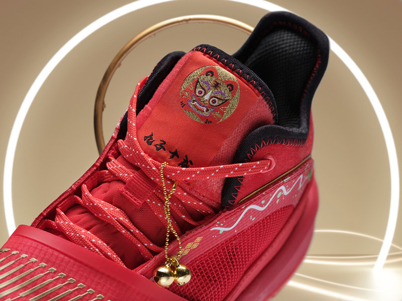 整体采用喜庆的大红色妆点鞋身,营造鸿运当头的节日气氛。