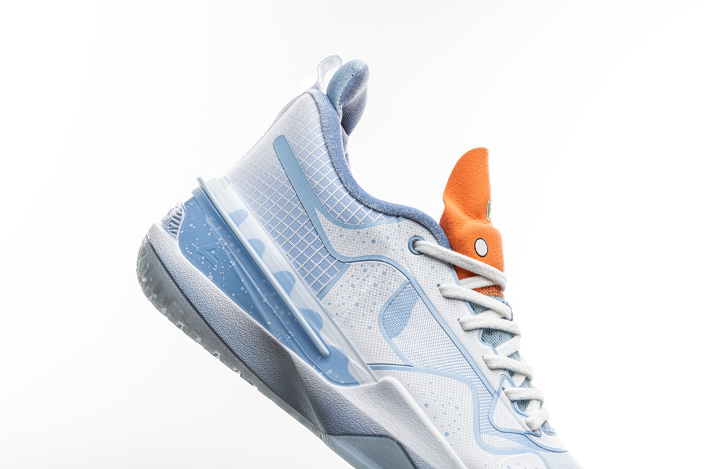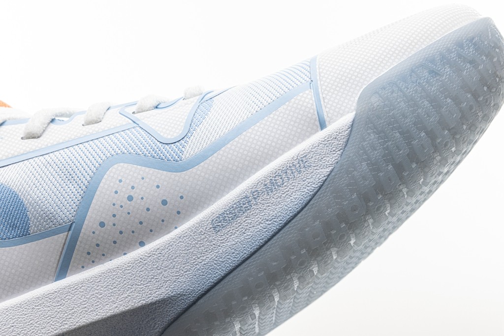后跟 TPU 部分还有代表冰雪融化的波纹图案以及代表雪的白色泼墨。