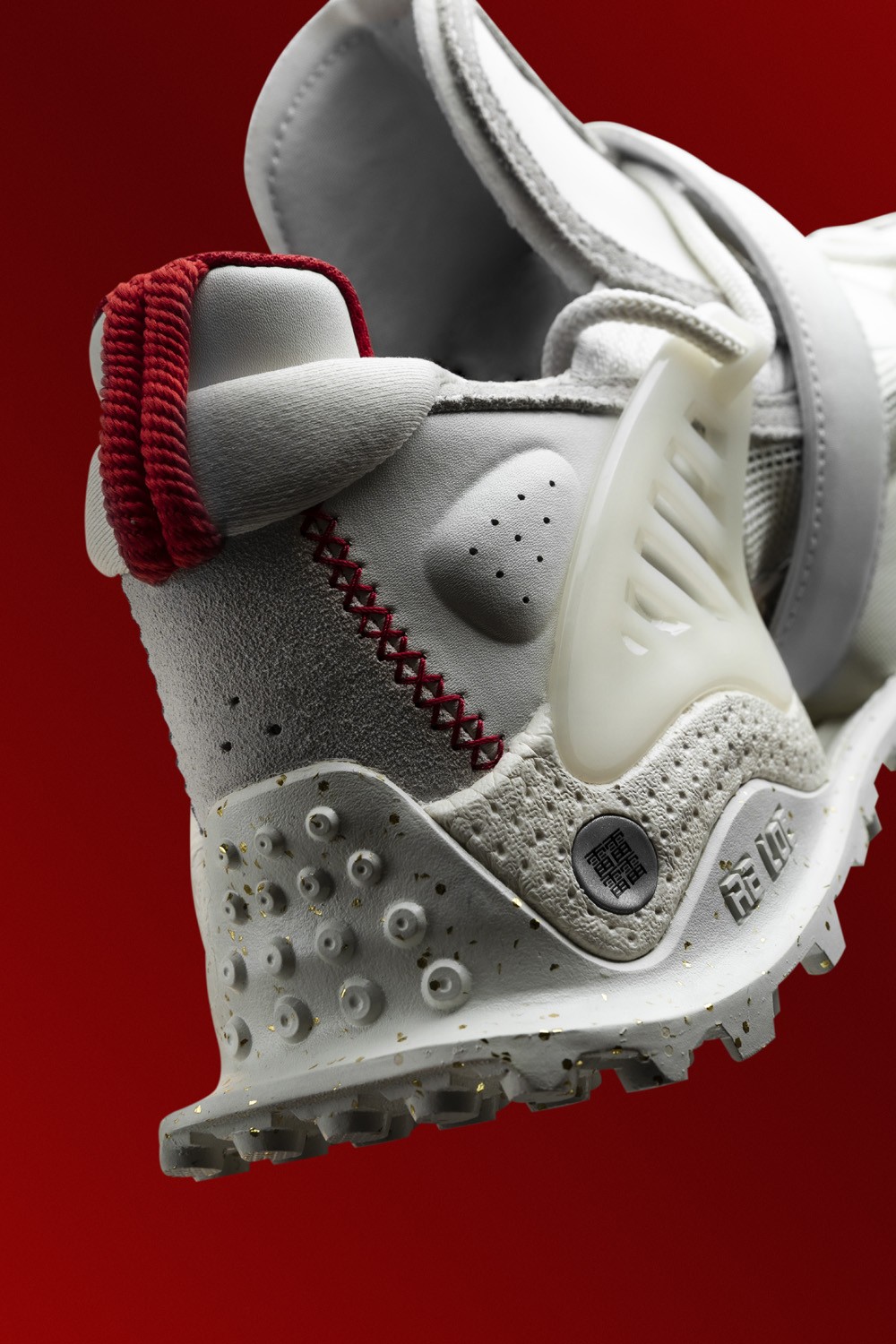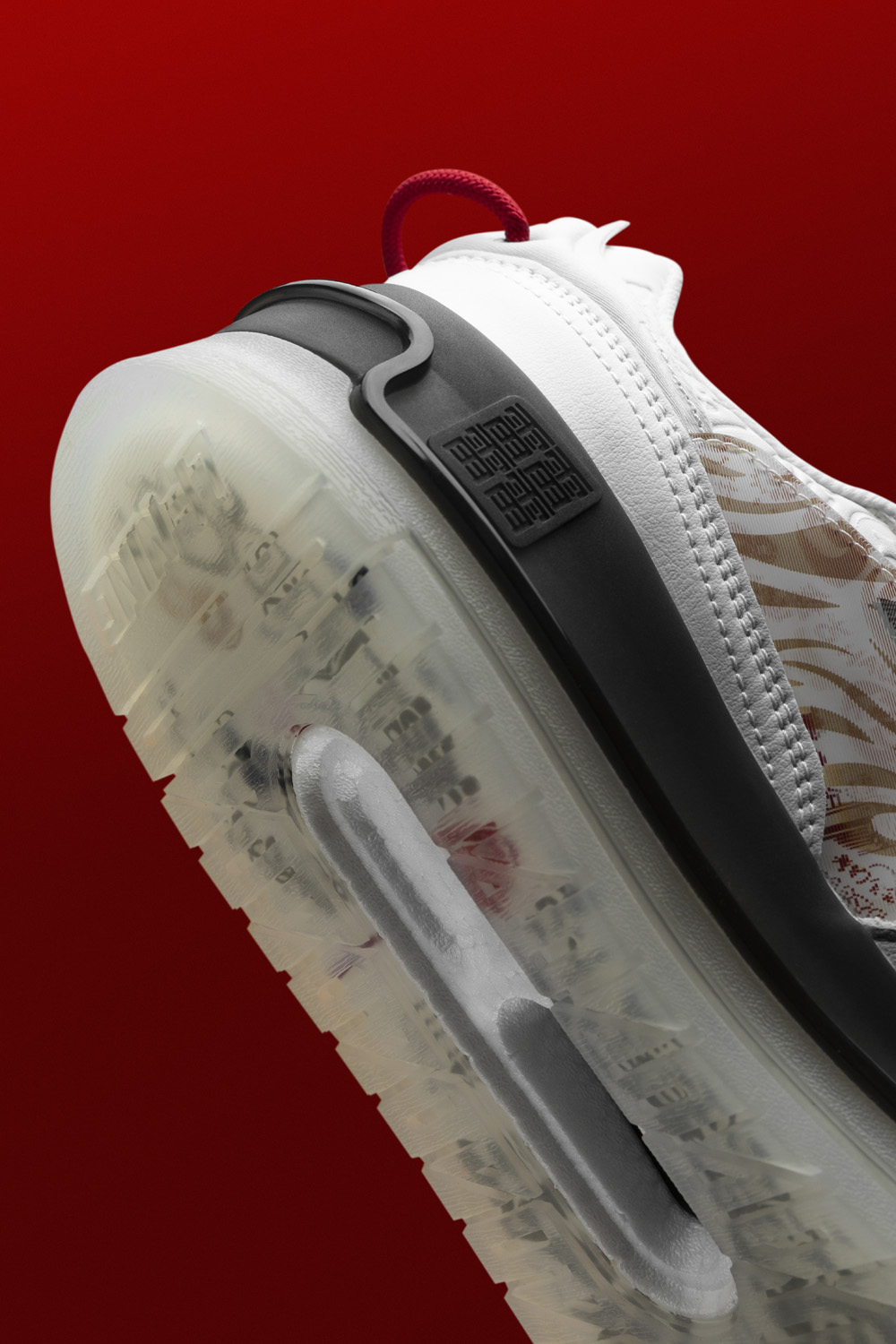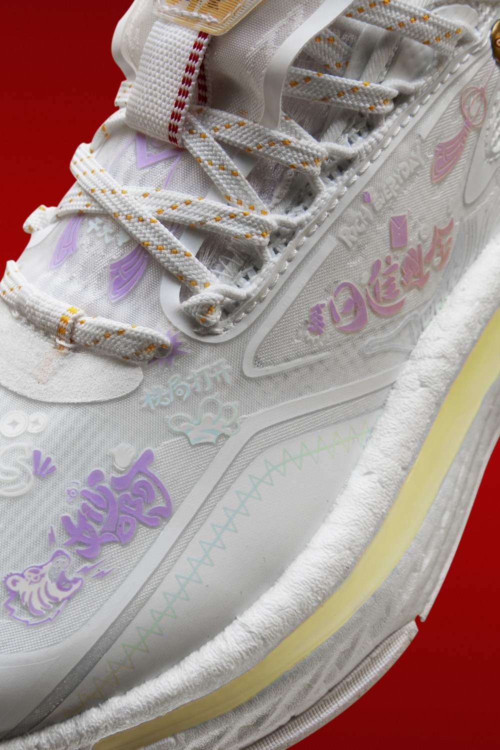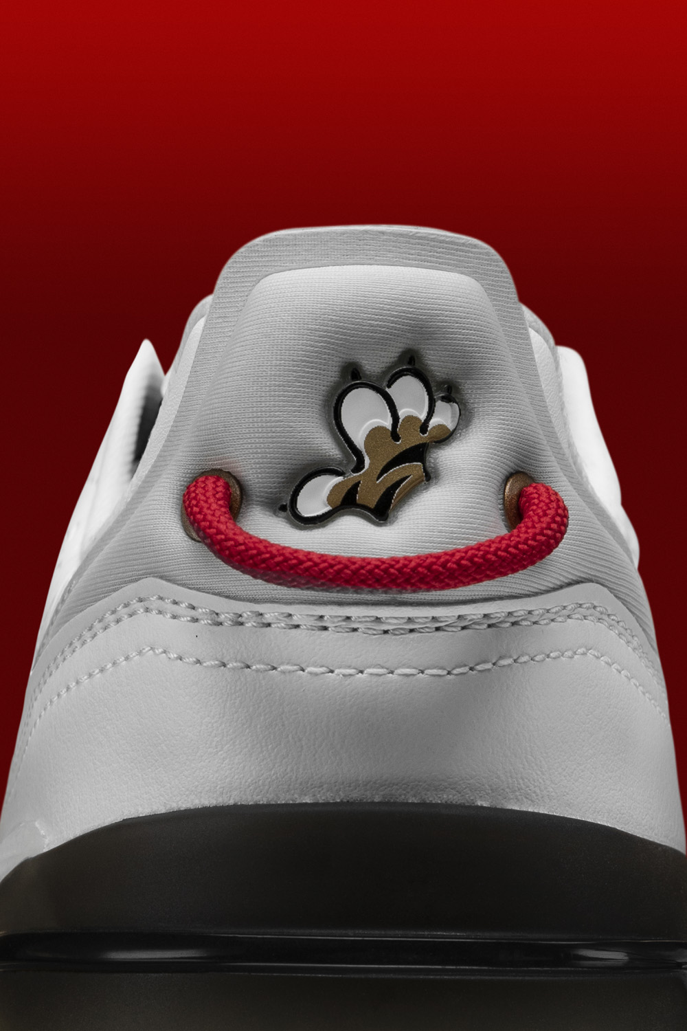鞋身以白色为主体,细节处以红色、金色点缀。