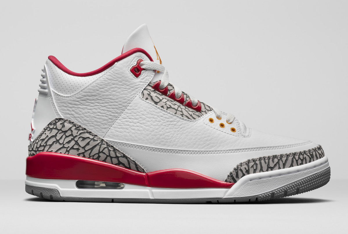 今年即将再度迎来一款白红配色的 Air Jordan 3 —— Air Jordan 3 “Cardinal Red”。