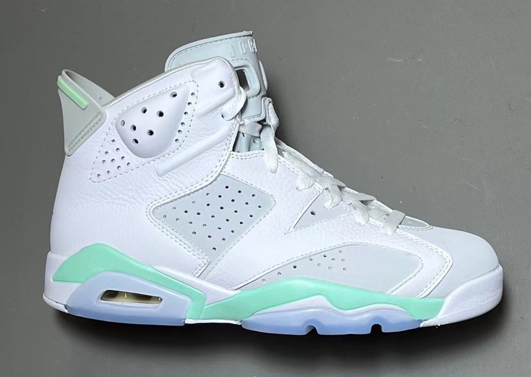 简约的白色鞋身搭配中底薄荷绿点缀,作为一双 WMNS 规格的女款 Air Jordan 6,十分适合小姐姐上脚。