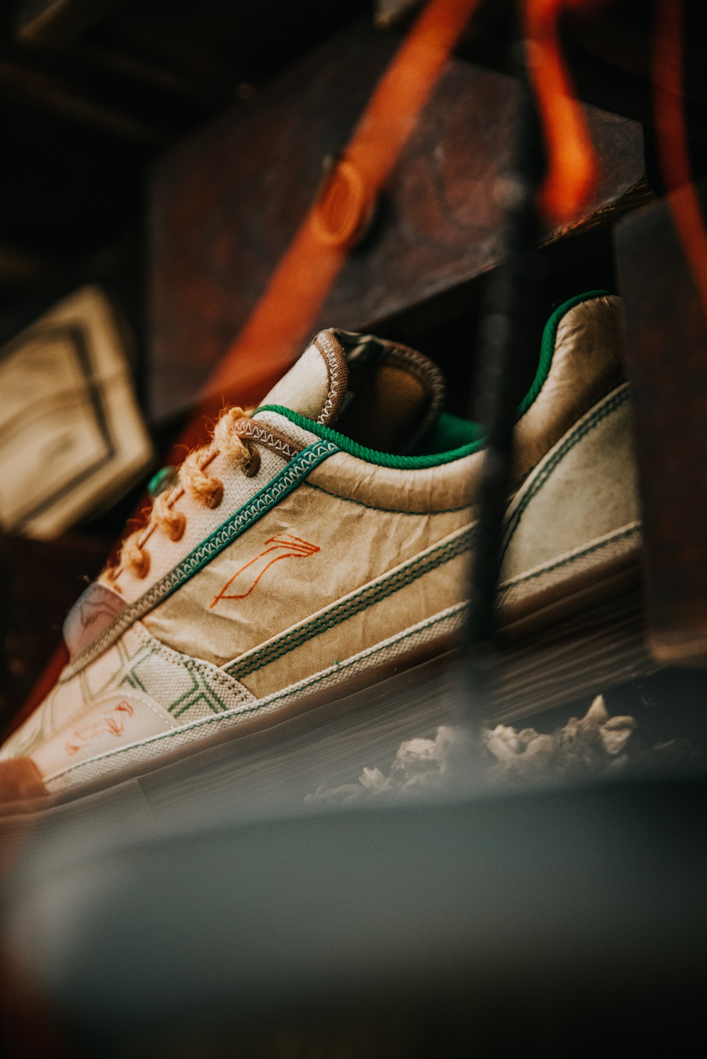 鞋侧桑皮纸上印有李宁 Logo,彰显联名身份。