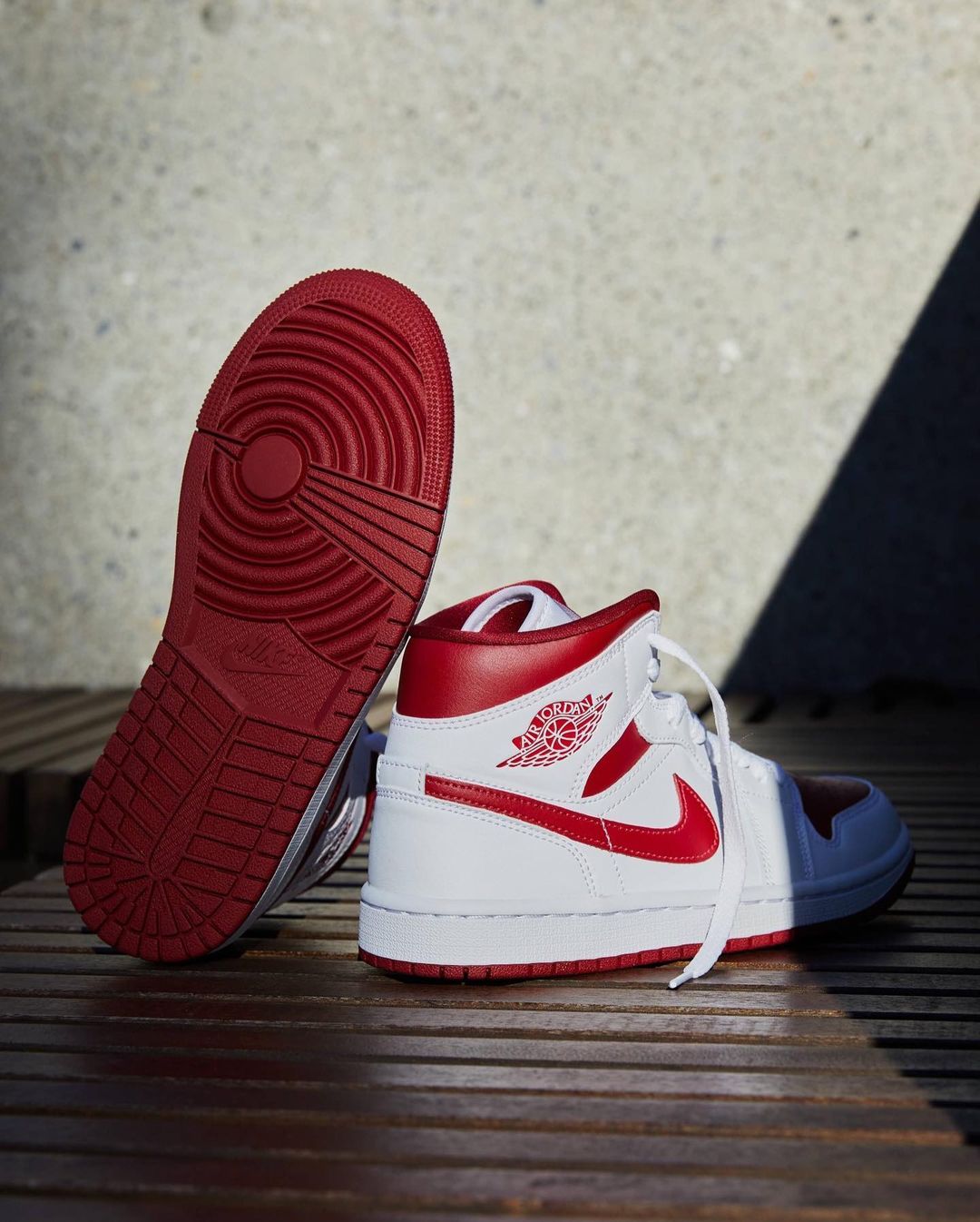 近日,一款酷似芝加哥配色的全新 Air Jordan 1 Mid “Pomegranate” 实物图曝光。
