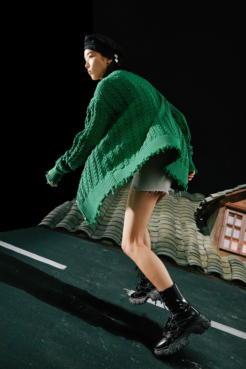 破坏设计的下摆,进一步呼应主题,相当个性。