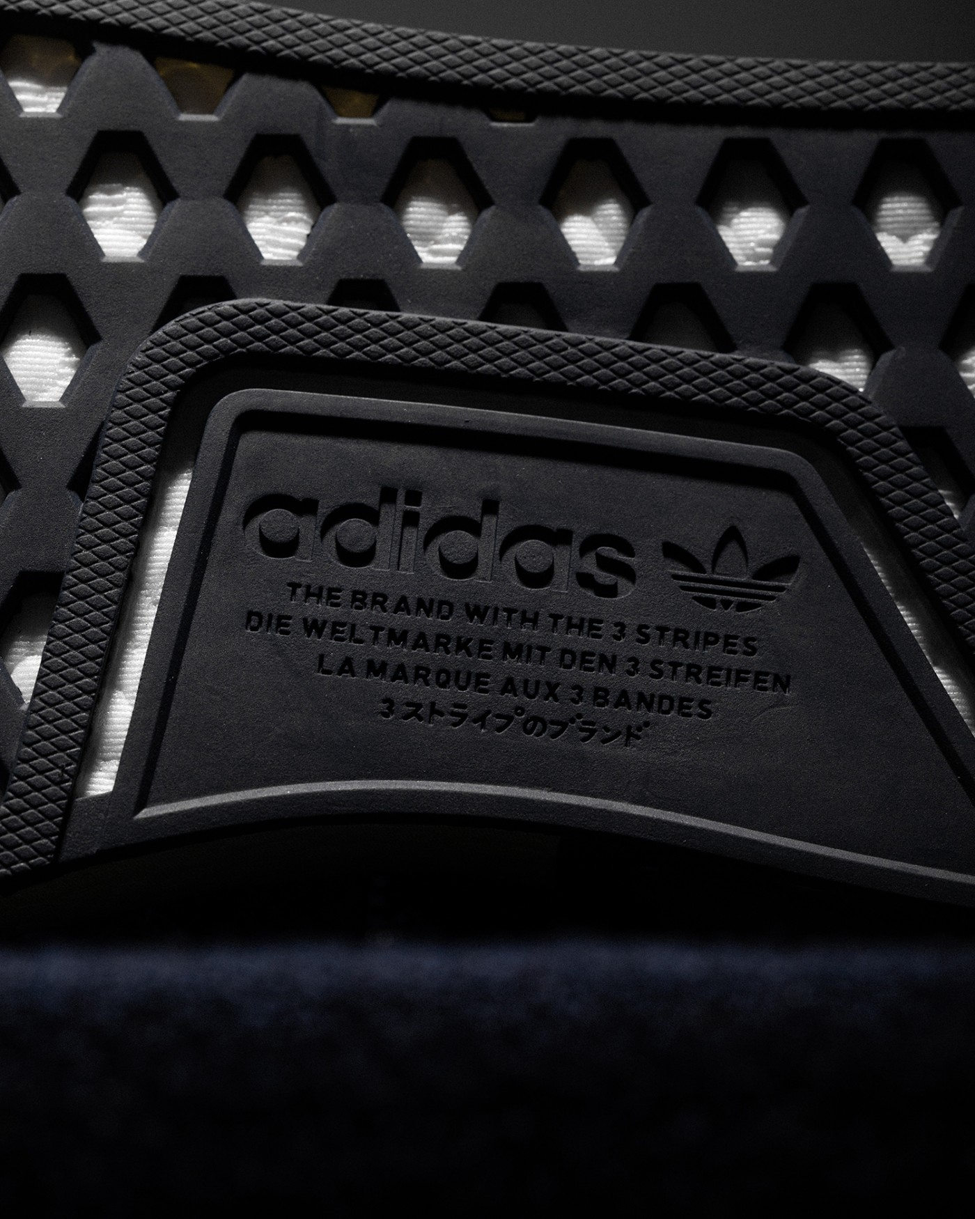 外底方面,还是熟悉的 NMD R1 纹路,值得注意的是透过外底可以看出内里的 Boost 依旧为白色。